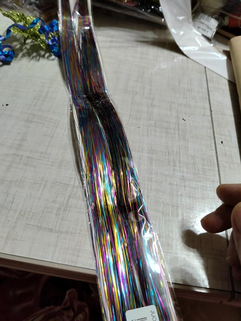 Fibre sottili, lucide e fluenti, che luccicano in modo meraviglioso, ma sono così piccole! Possono essere indossati sui capelli lunghi solo in occasione di qualche festività. Non me l'aspettavo.