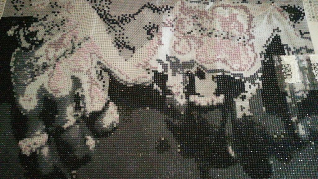 Non vedevo l'ora di vedere il motivo, ma purtroppo la qualità lascia molto a desiderare: la pellicola adesiva si sta staccando e ci sono pieghe e aria sotto la pellicola adesiva ovunque. Anche le distanze tra le perle sono troppo grandi Peccato 😞..