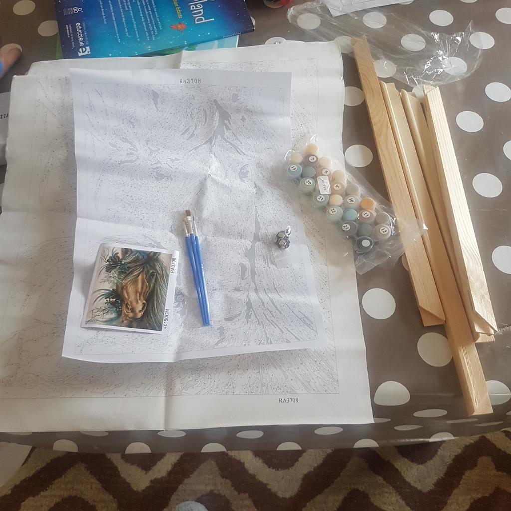 Foto stupenda e tutto fornito completo di cornice, chiodi, montaggio con viti, vernici + pennelli. Ora devo solo avere il tempo di dipingerlo 😄. Chiara raccomandazione di acquisto 👍