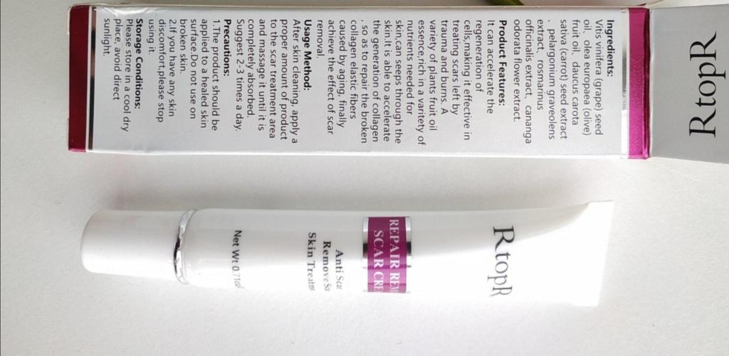 🌺Crema per cicatrici 🌺 L'ho ordinato per le cicatrici da acne. Odio quando l'acne scompare, ma lascia la cicatrice per mesi. Sto cercando un buon prodotto per sbiadire quelli. In realtà ne ho ordinati molti di altre marche. ODEO, MeiYanQoing, Mabrem e questo RtopR. Voglio controllare la loro velocità di guarigione e fare un confronto. Mi piace questo marchio, in particolare mi piace la consistenza e l'odore della crema di mango. 🌺 Questa crema è per tutti i tipi di cicatrici, come cicatrici da operazioni, cicatrici traumatiche, ustioni, cicatrici da acne. 🌺 Questa crema sostiene di accelerare la rigenerazione delle cellule della pelle. Penso che valga decisamente la pena provare. L'importo totale è di 20gr.