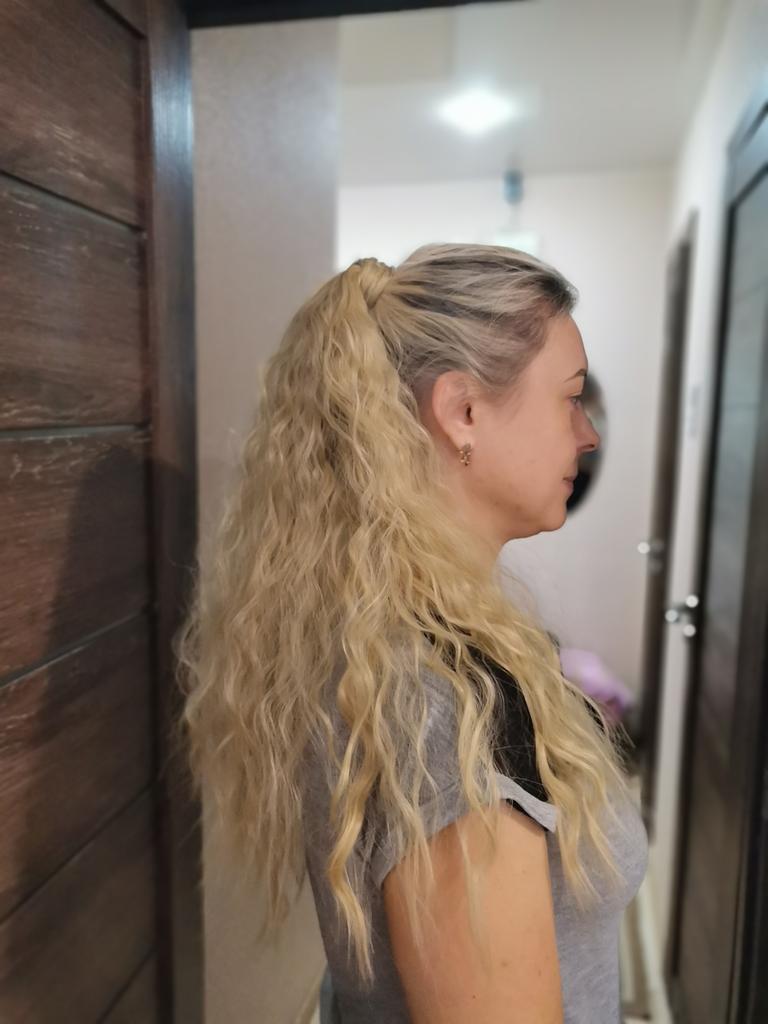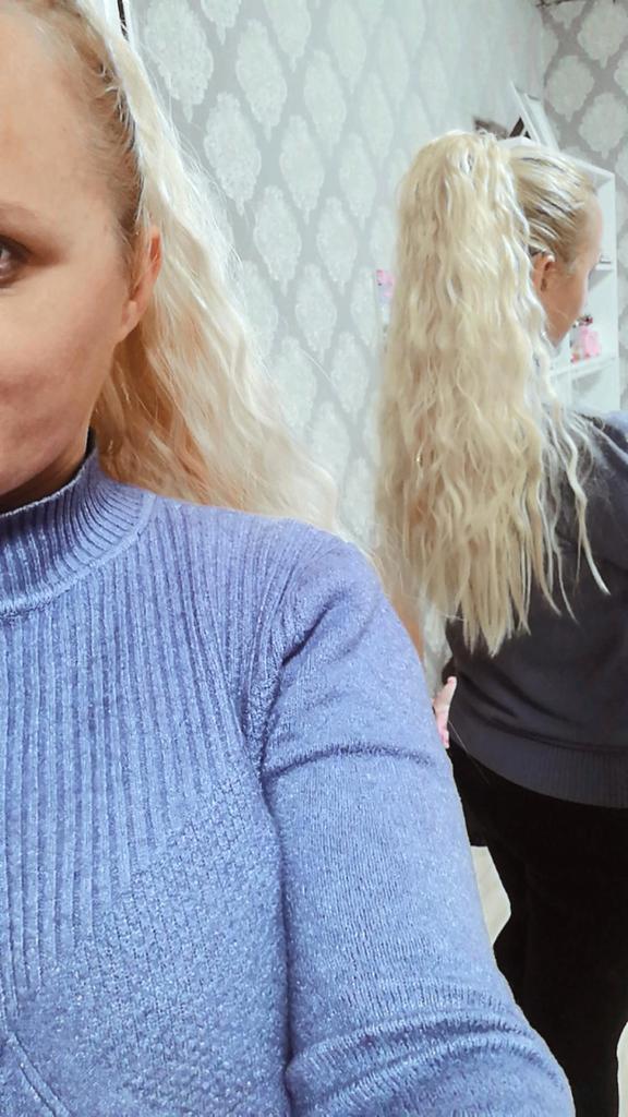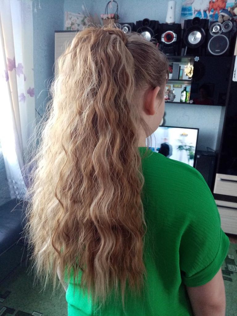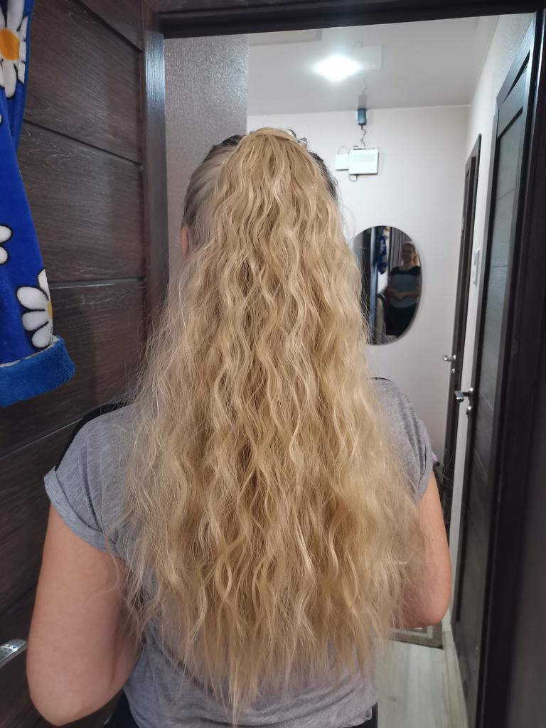 Bella coda di cavallo 🌸 Ho comprato questa clip nell'estensione dei capelli su lisihair. Vendono vari pezzi di capelli sintetici e parrucche. Questa coda di cavallo è lunga 55 cm e pesa circa 120 grammi. La qualità dei capelli è molto bella. Sembra proprio vero! L'ho ricevuto in due settimane.