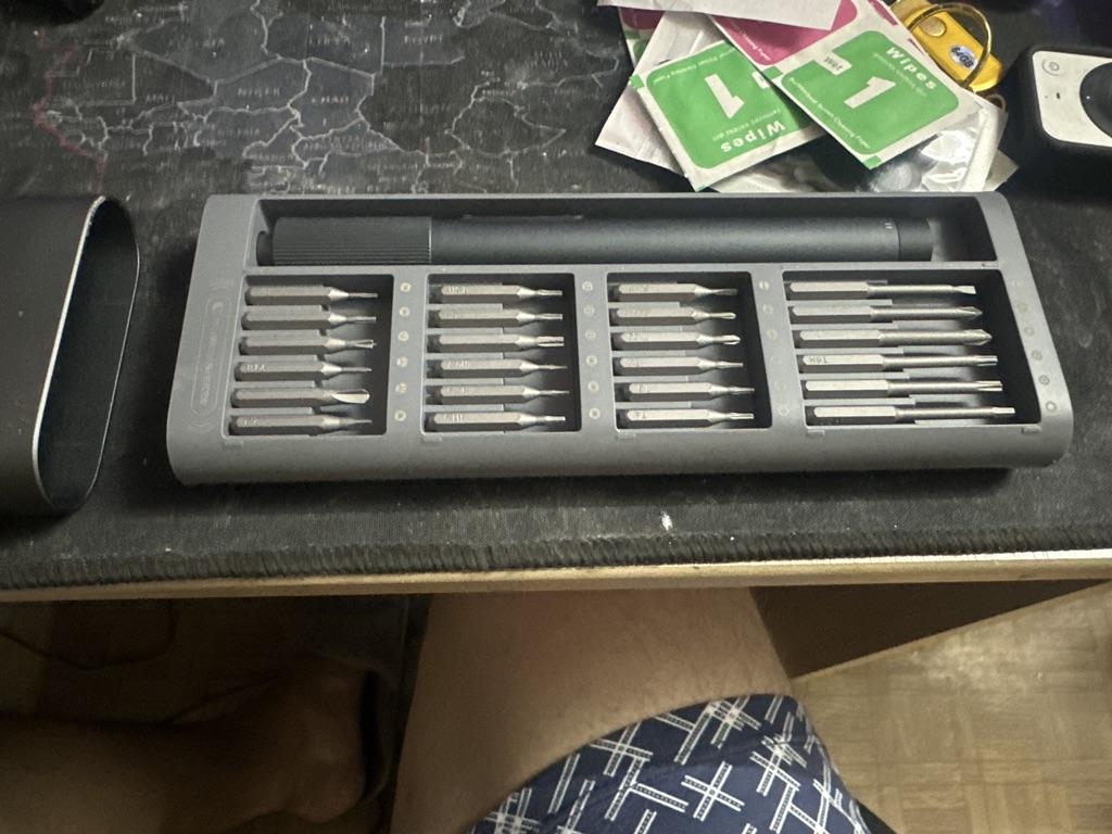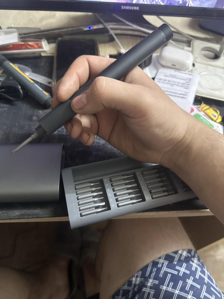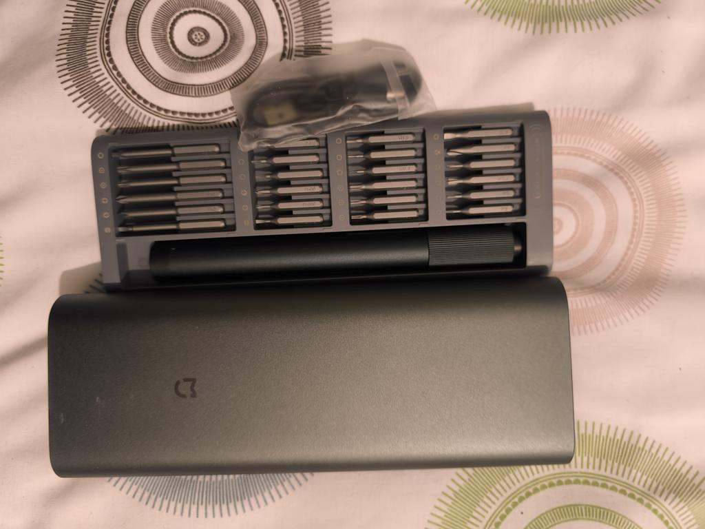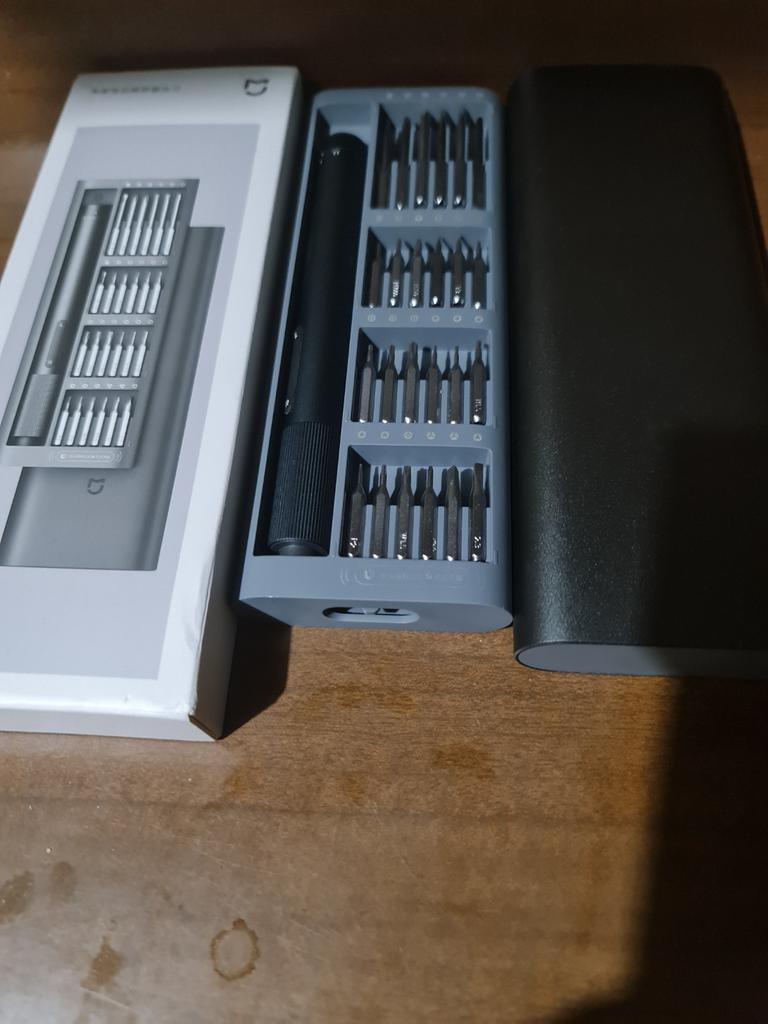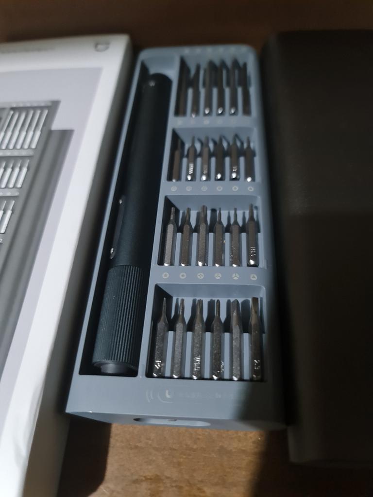 Non mi aspettavo che la scatola fosse così grande (lunghezza - 20 cm). Le punte sono ben magnetizzate e la coppia è buona. Si ricarica tramite cavo di tipo C