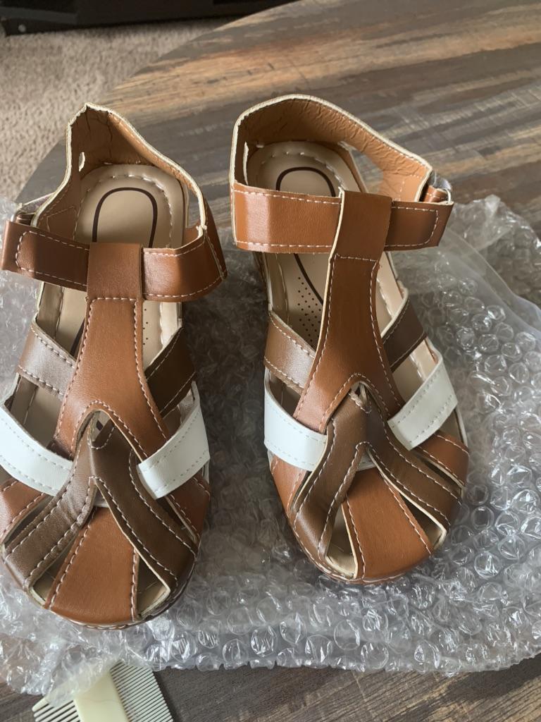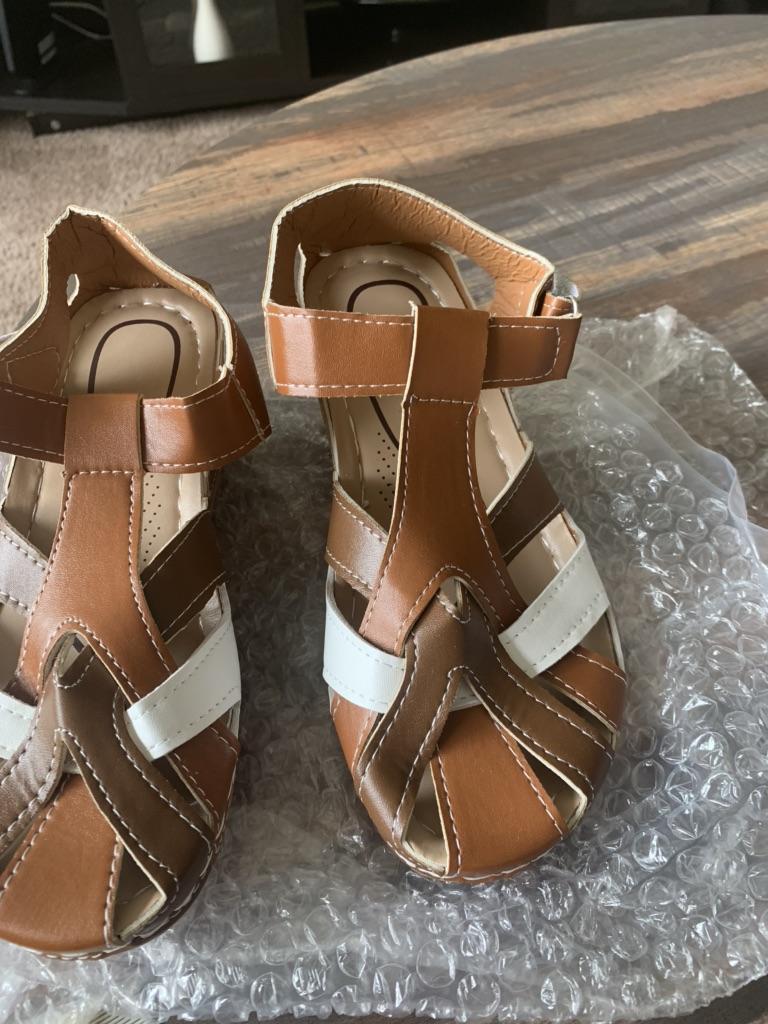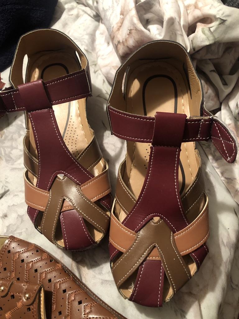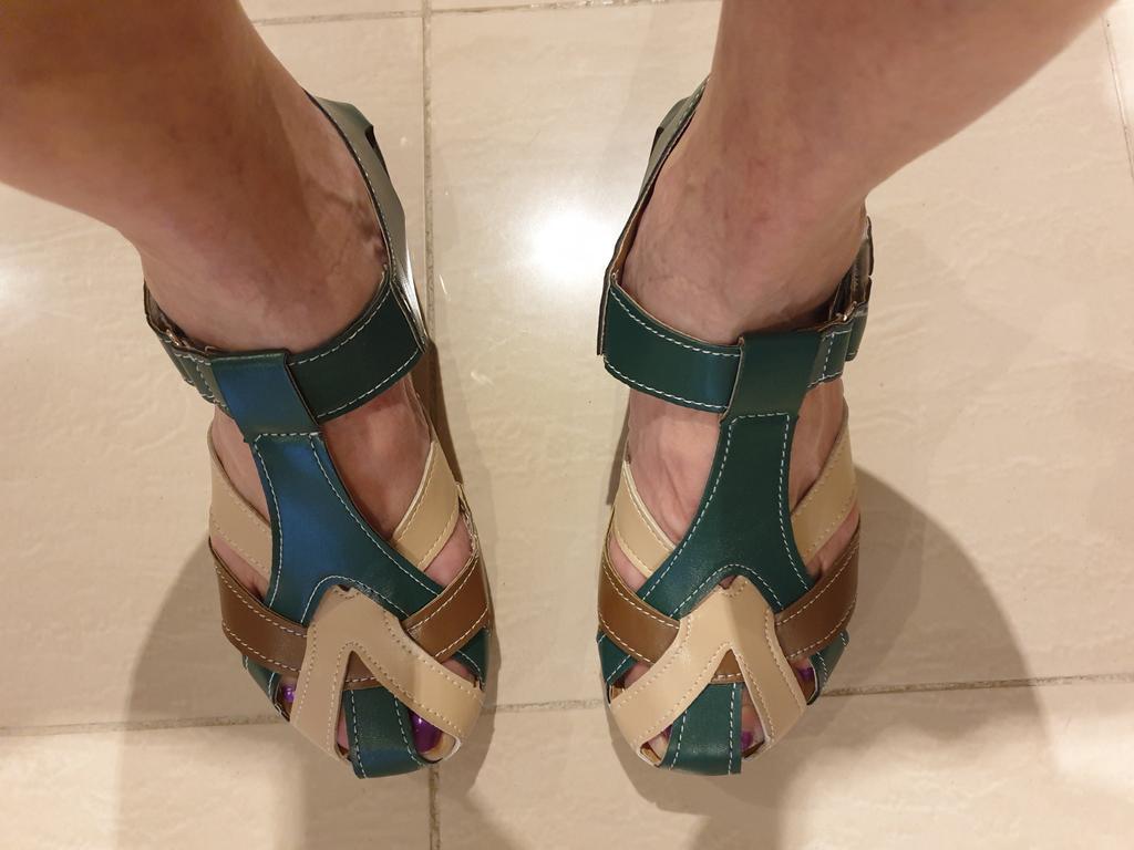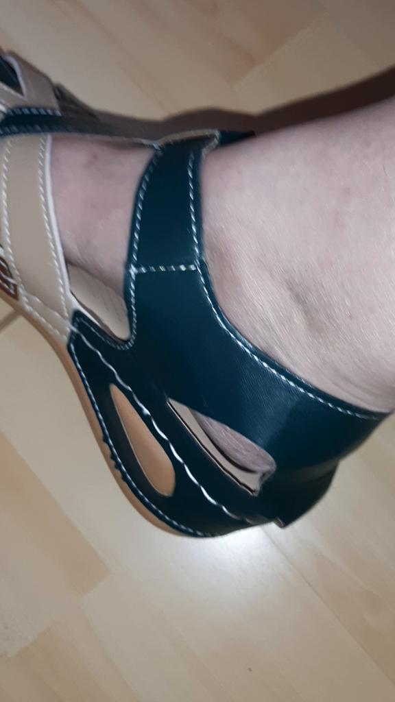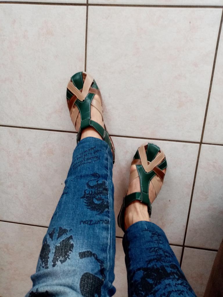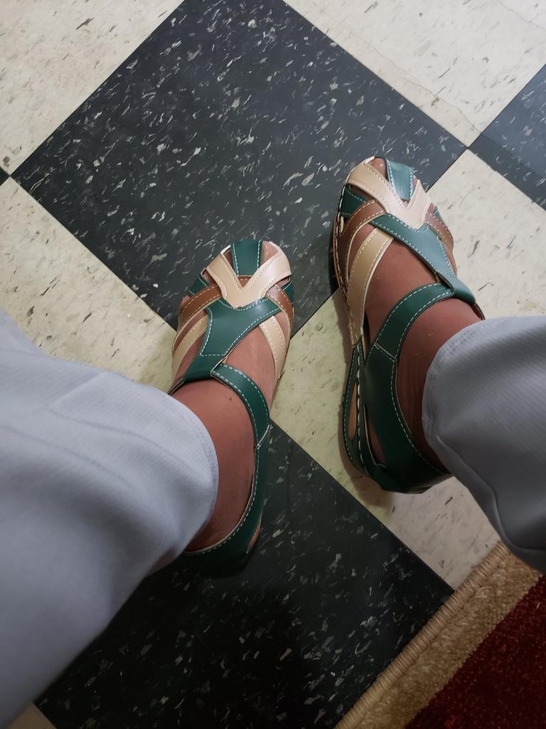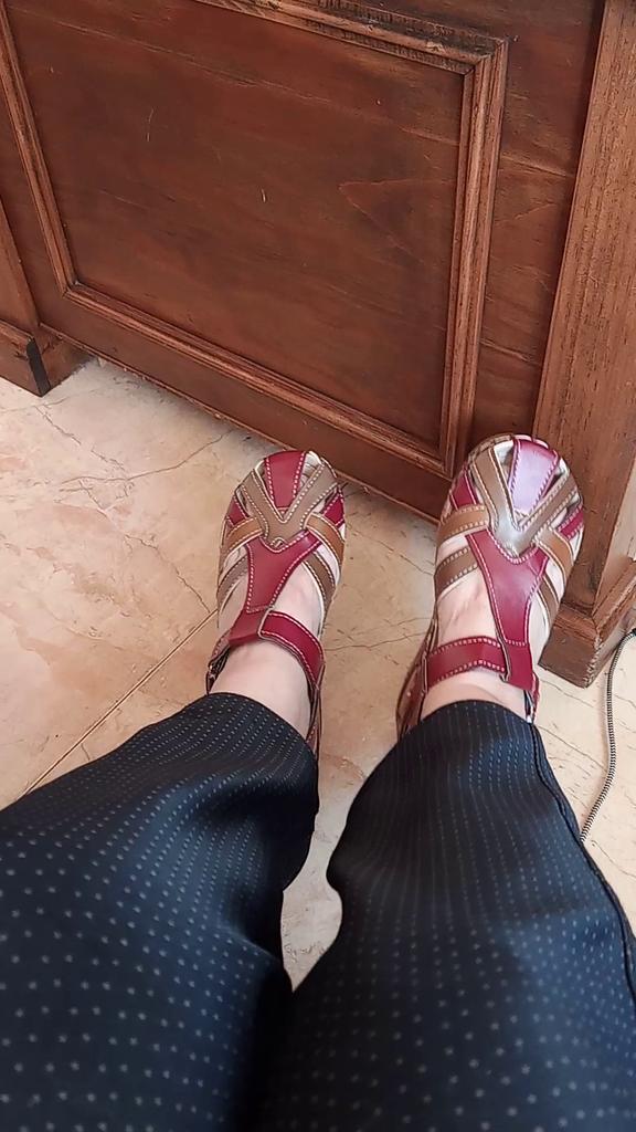 Sandali meravigliosi. Leggera, bella seduta sulla gamba. Avvicinato perfettamente. Mamma, molto contenta. I sandali sono adatti a chi ha vita alta e gamba larga. La taglia è stata scelta come di solito si indossa. La taglia veste perfettamente. Vediamo come verranno indossati. Oh, molto felice. Noi raccomandiamo.