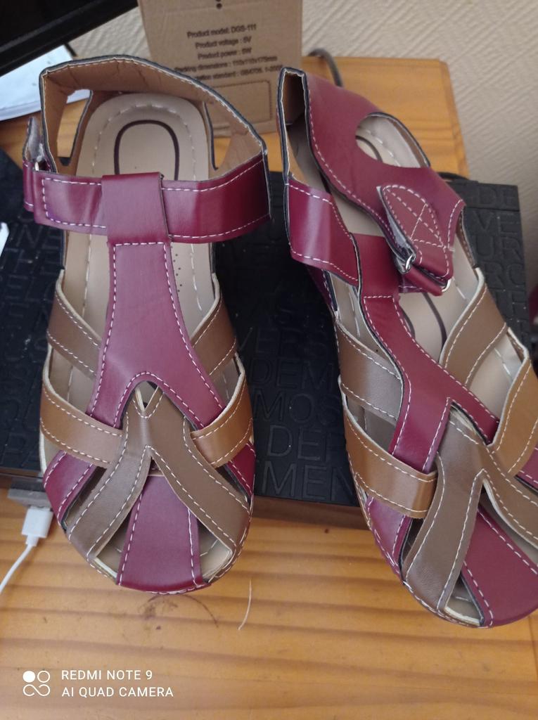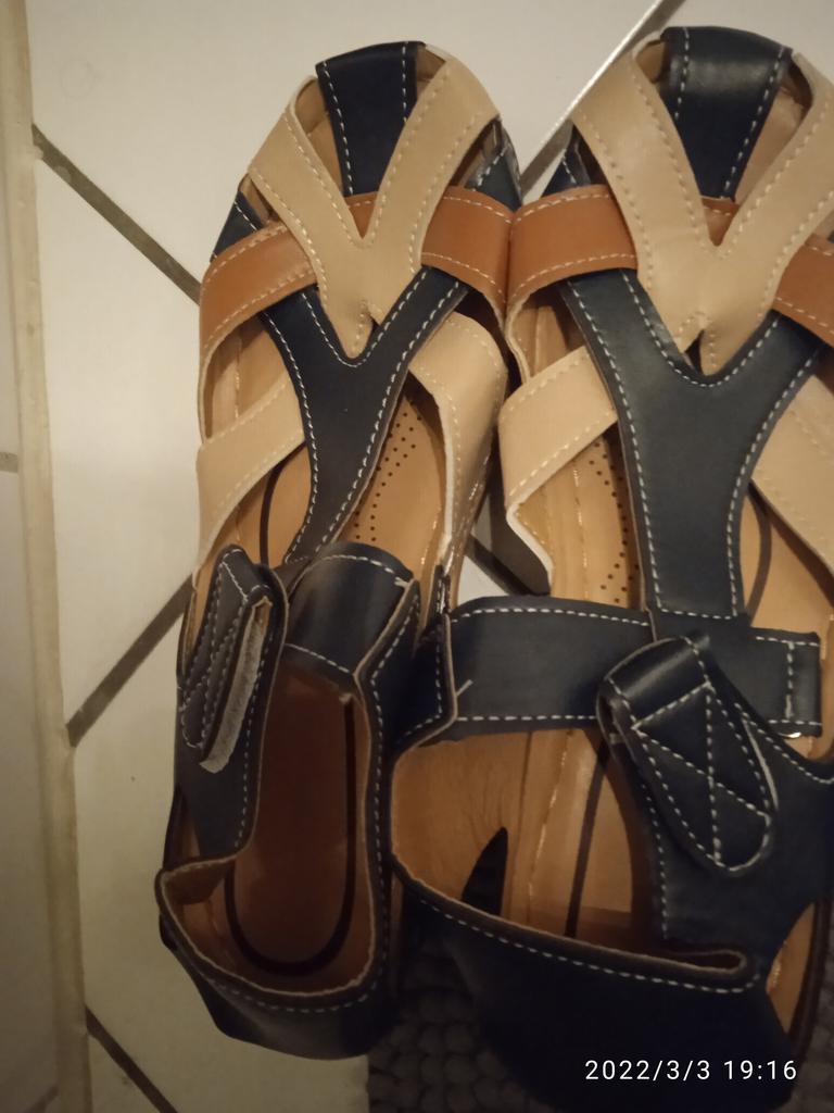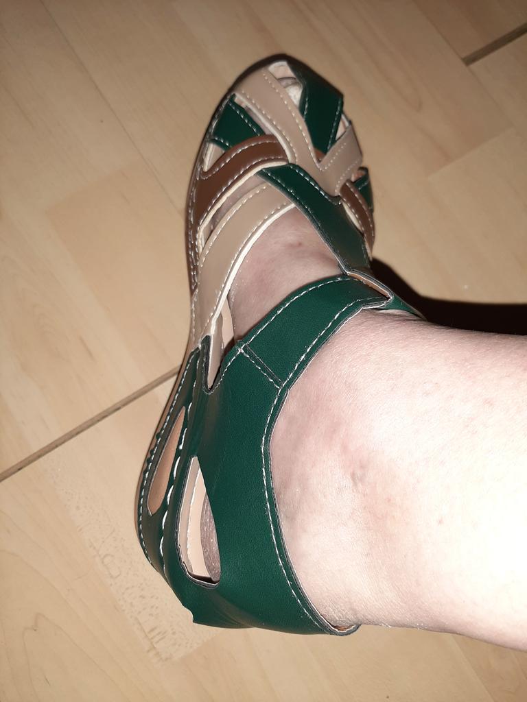Ho ricevuto il mio ordine: scarpe estive semiaperte - sandali. 37.0 si adatta alla mia taglia 36.5 bene in lunghezza. Vestono una gamba larga, vita alta. La gamba è leggera, non preme. L'unica cosa che può disturbare è il dorso morbido, che è già stato utilizzato durante il parto, spero che si livellerà e non si abbasserà in modo evidente. Chiusura in velcro. In generale, il prodotto è normale, posso consigliare il venditore. Grazie Jum per la consegna.
