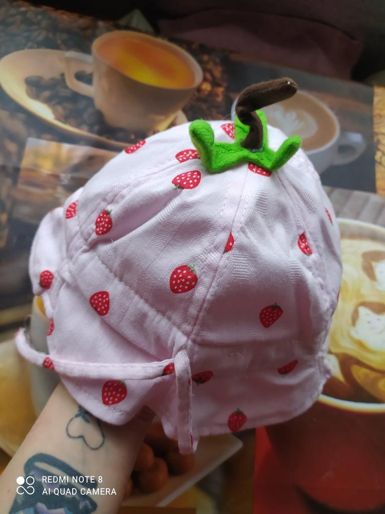 Un cappello molto carino, ha un elastico sul mento e si stringe con un cordoncino sotto il volume della testa