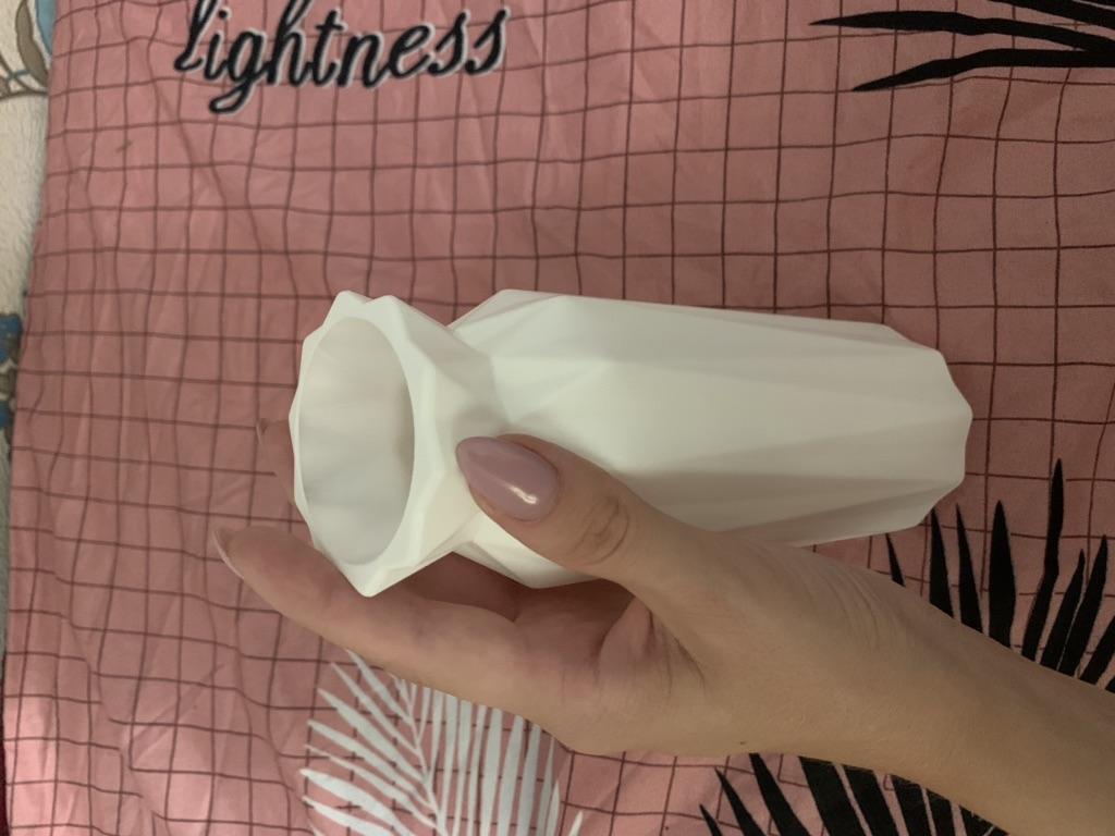 Vaso super carino ed elegante 💙🌾. Questo vaso di fiori è l'ideale per aggiungere un tocco di eleganza alla decorazione di ogni angolo. L'ho usato per posizionare dei fiori e metterlo su un tavolino, è stato super cool🥰🙌🏼! Io ho scelto il colore verde menta, è molto bello e trasmette molta tranquillità🤍. Quello che mi è piaciuto di più è che il vaso è di plastica ed è super leggero, il che lo rende più facile da spostare. E questo significa anche che non c'è molto pericolo che si rompa. Si adattano a un numero sufficiente di fiori, soprattutto se si tratta di un bouquet fine e allungato. Penso anche che starebbe benissimo in cucina per aggiungere un tocco di colore💙. Lo consiglio vivamente, mi è piaciuto molto 🥰🥰.