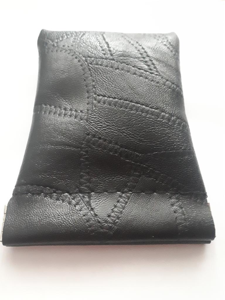 Portachiavi in pelle. Non posso dire di essere così felice dell'acquisto. Duro e molto duro) Mi aspettavo una sensazione di pelle morbida e flessibile tra le mani, ma qui è il contrario. Mantiene la sua forma ed è della dimensione perfetta per un piccolo mazzo di chiavi. Cucito da piccoli pezzi di pelle.