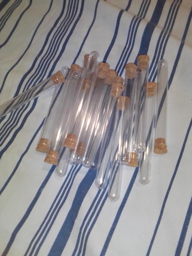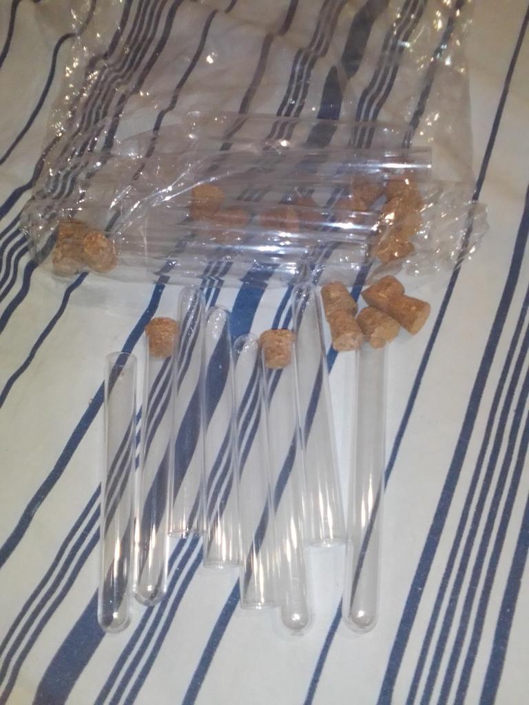 sembra essere vetro acrilico, i tappi sono in vero sughero