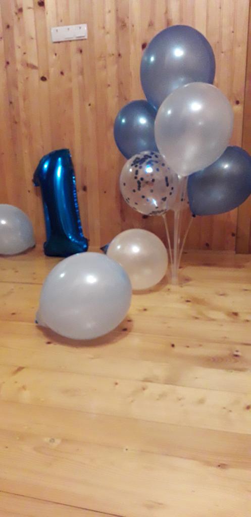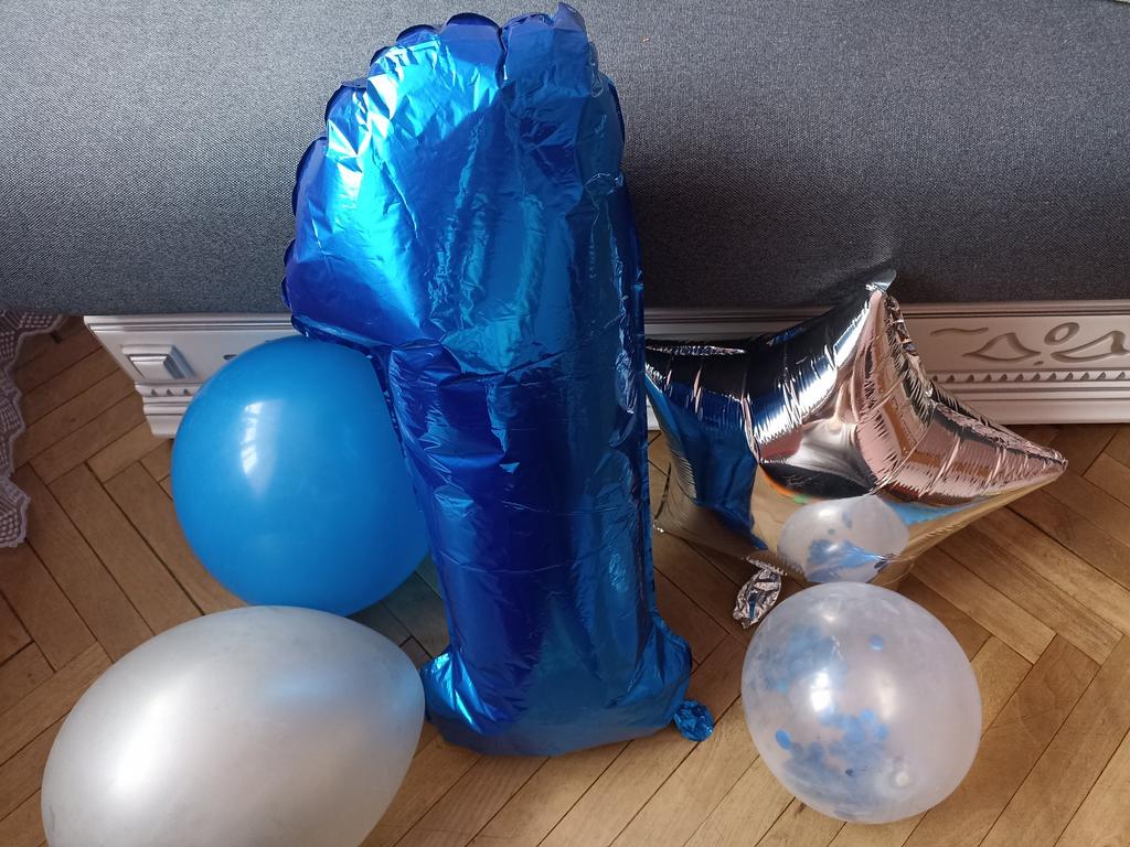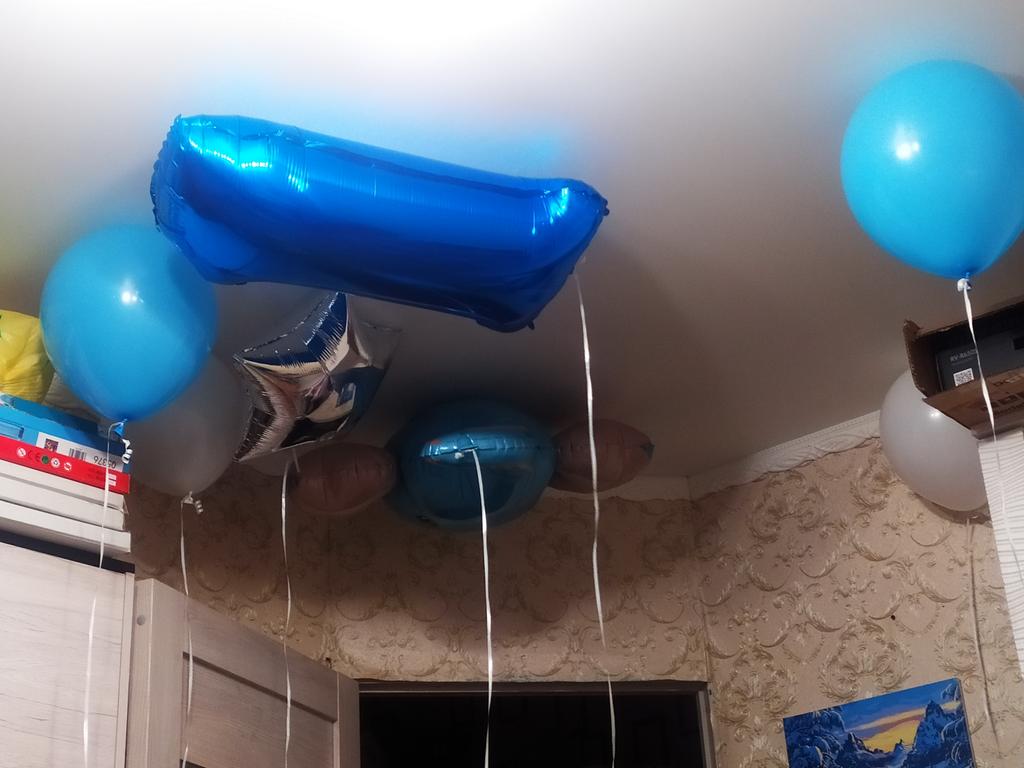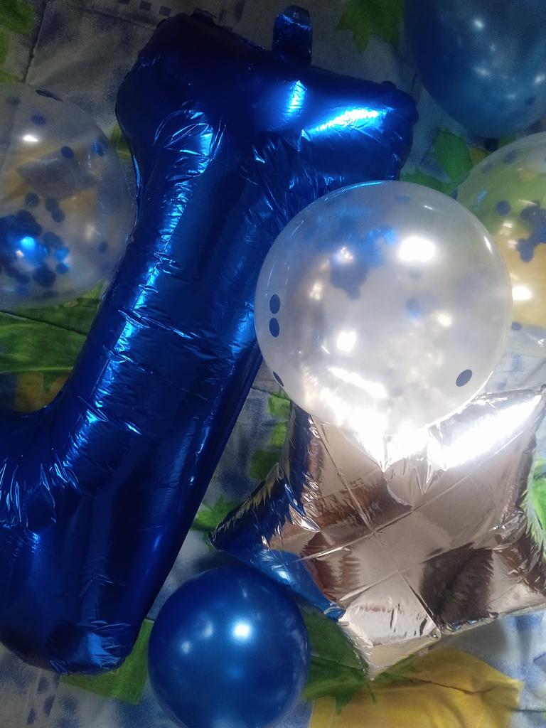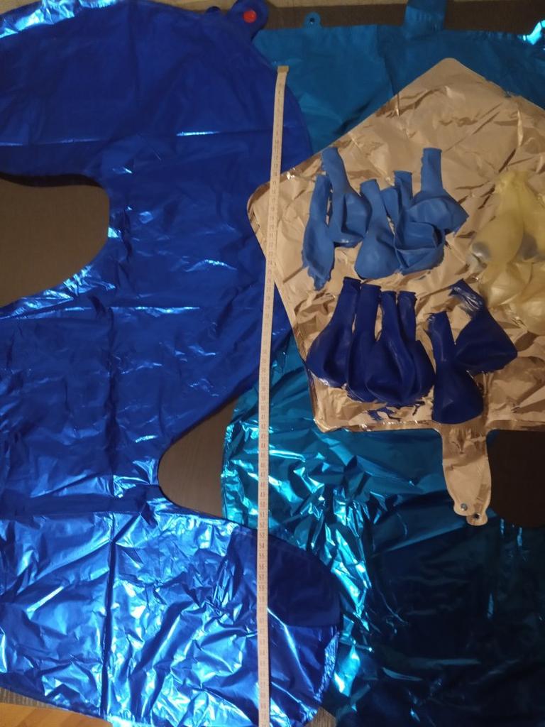 L'ordine è arrivato in 25 giorni all'Ukrposhta. Due palloncini in foil - un numero uno di colore azzurro e una stellina argentata. Dieci palloncini - due bianchi, due trasparenti con coriandoli blu all'interno, tre blu e tre azzurri. Non li ho ancora usati, ma all'aspetto sono integri, senza odore e, per dimensione, sembrano essere piuttosto grandi.