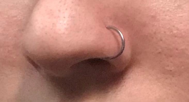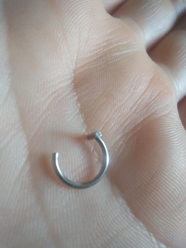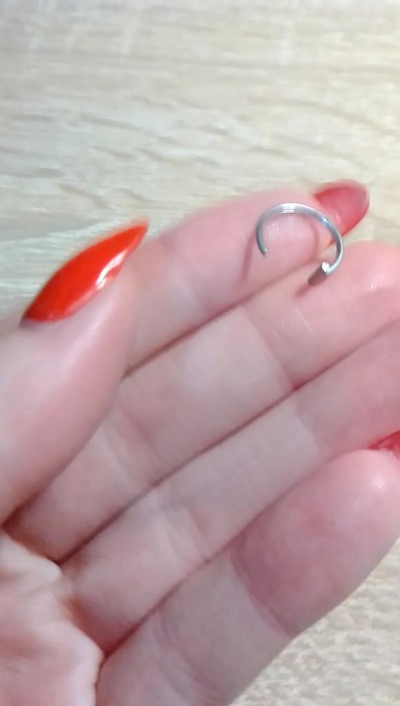 È troppo grande e scivola, non è molto comodo da indossare, ma per una foto andrà o proverà come apparirà un vero piercing sul tuo viso) Ma con un forte desiderio, puoi stringere l'anello con l'aiuto di strumenti e poi si siederà stretto