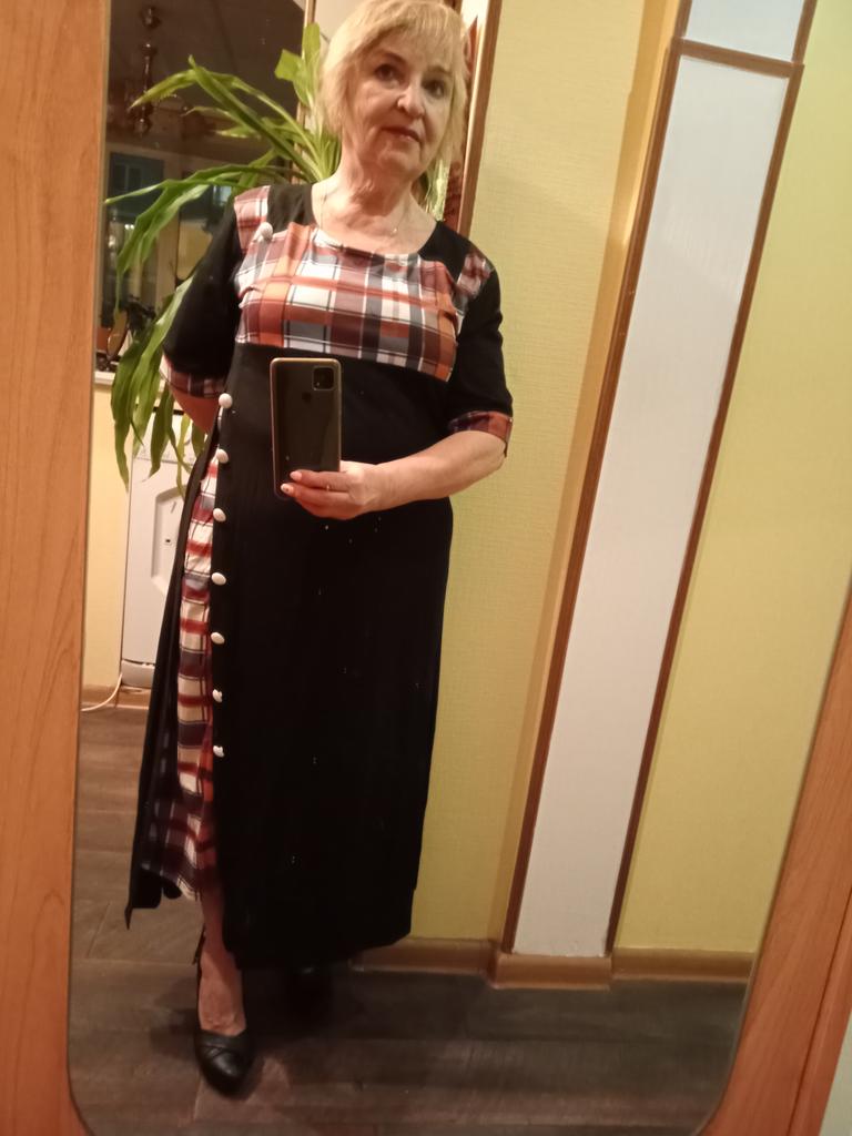 Non lo consiglio. Se la qualità del materiale principale corrispondesse alla qualità degli inserti a quadri, l'abito sarebbe come nell'annuncio (nella foto). E quindi è più simile a una vestaglia e non a un vestito per uscire dall'appartamento.