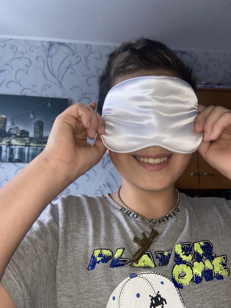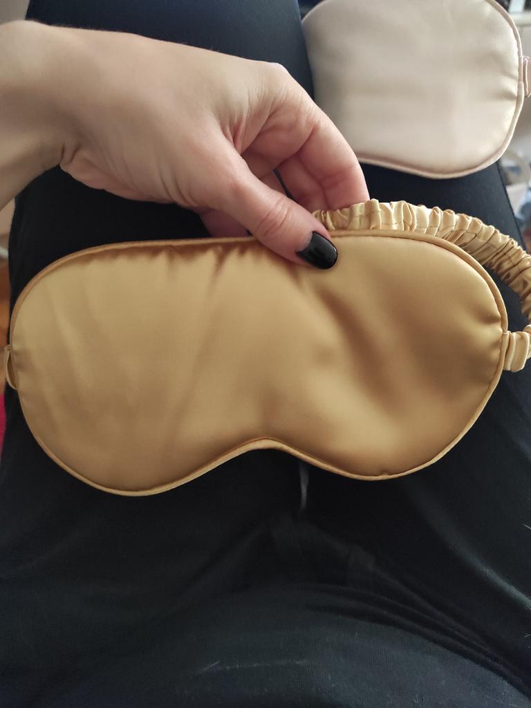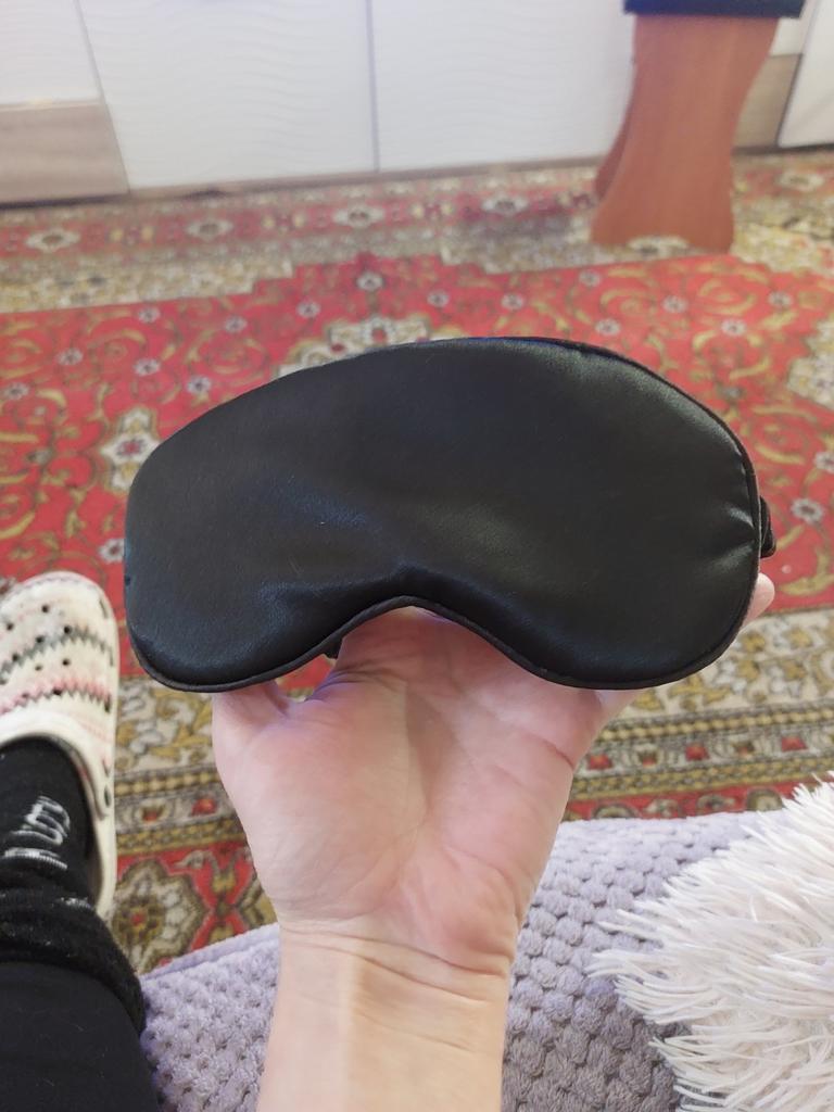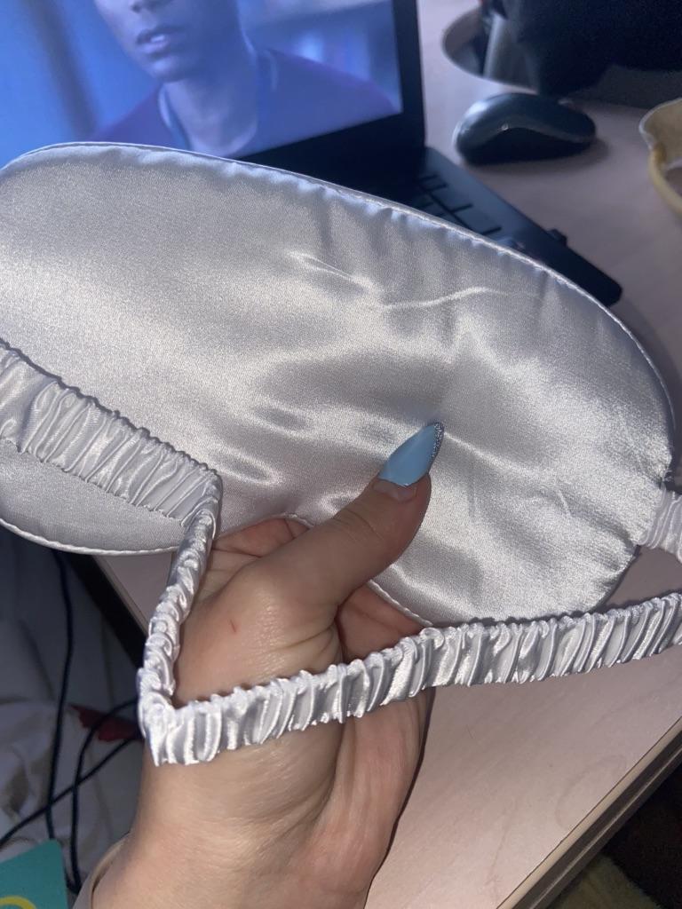 Una maschera per dormire bella e comoda 🥰 La crosta tiene bene, non è tirata, non pressa. Materiale molto morbido e piacevole, come la seta 😁 Consiglio ❤️