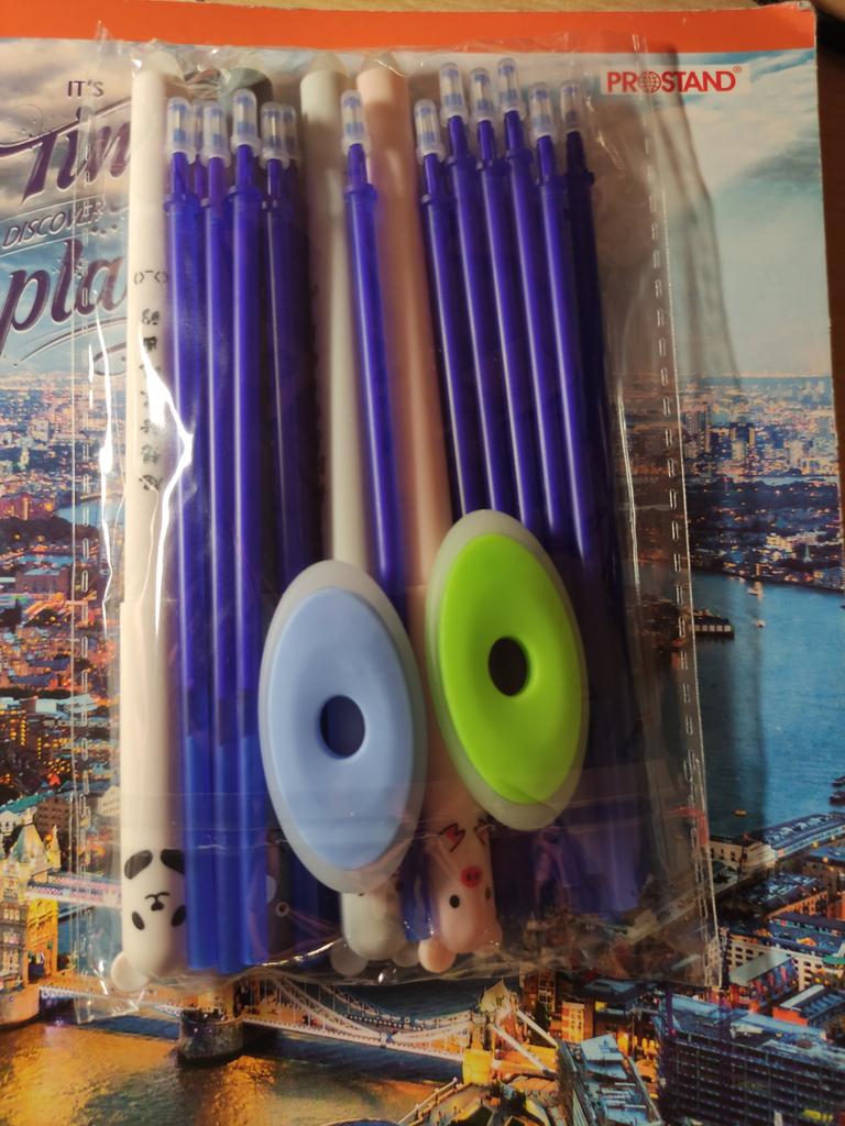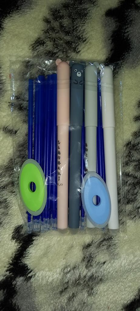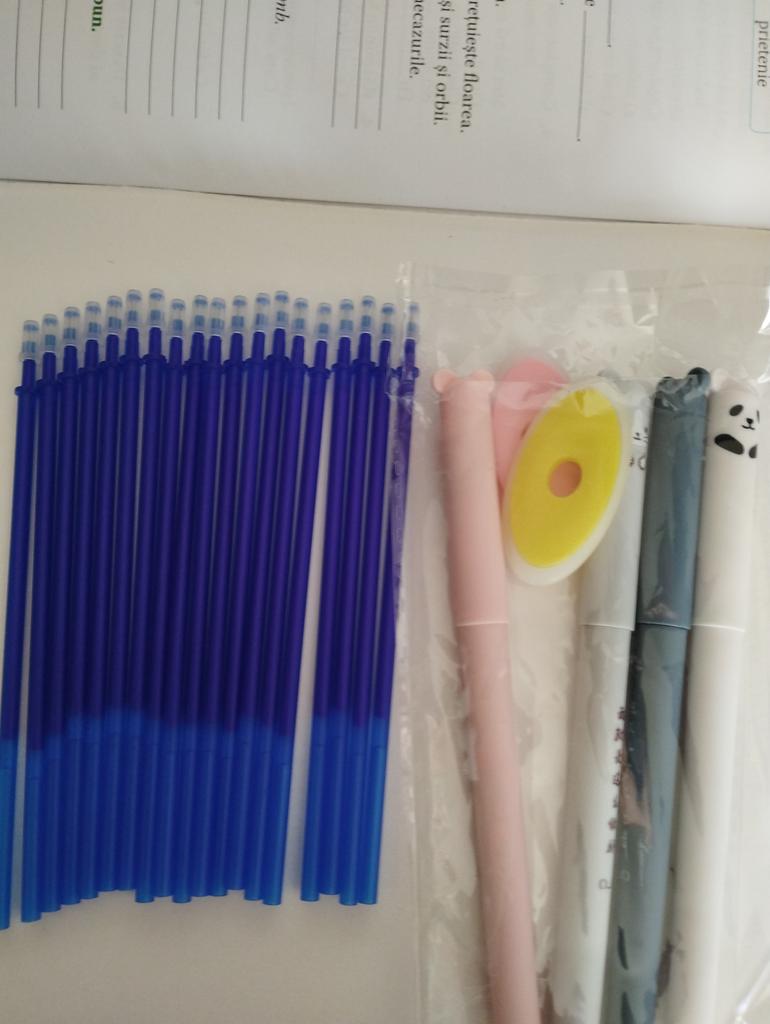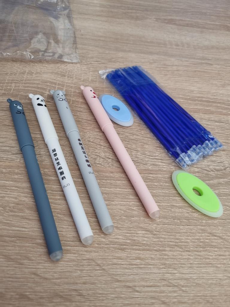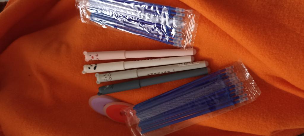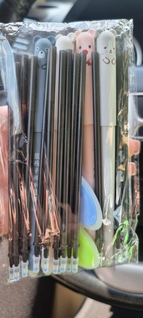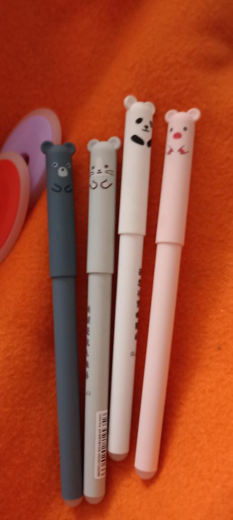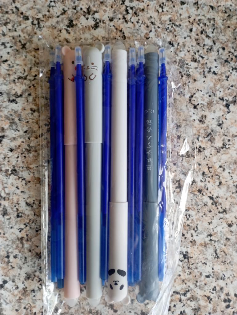 Le penne sono molto belle e scrivono bene, è bello che siano dotate di molte ricariche ed è molto comodo poterle cancellare se commetti un errore.