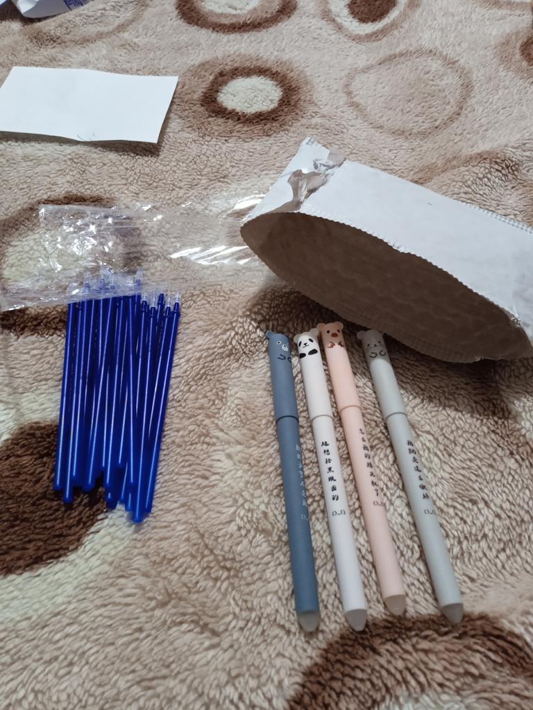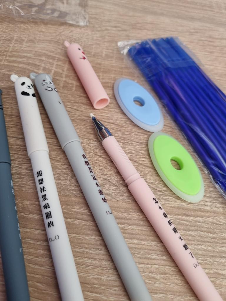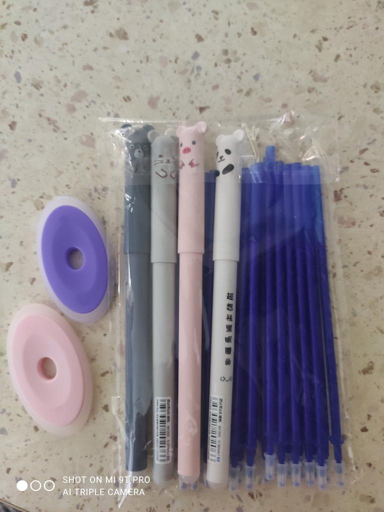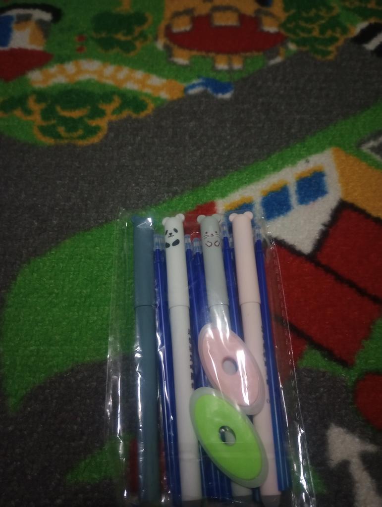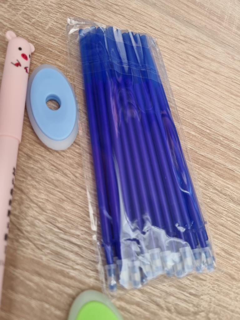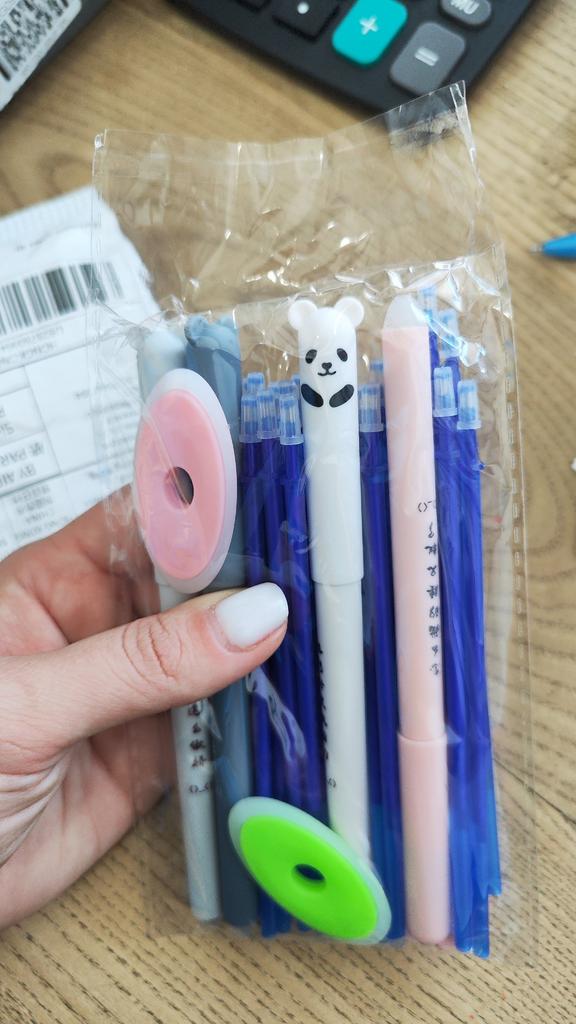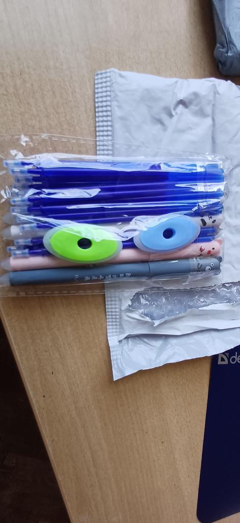 Le penne sono molto belle e scrivono bene, è bello che siano dotate di molte ricariche ed è molto comodo poterle cancellare se commetti un errore.