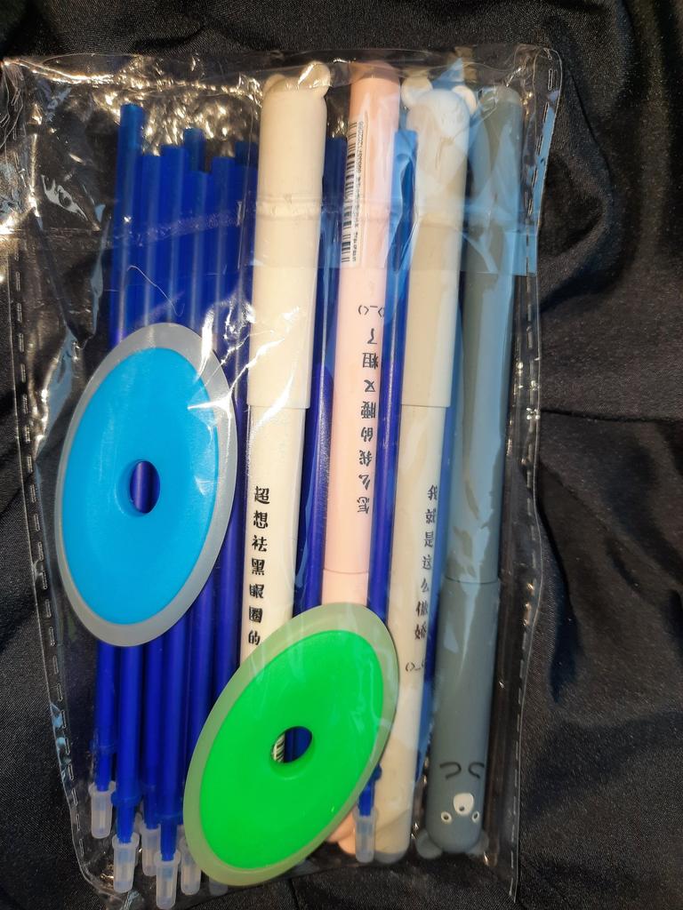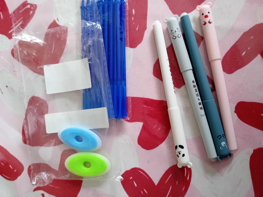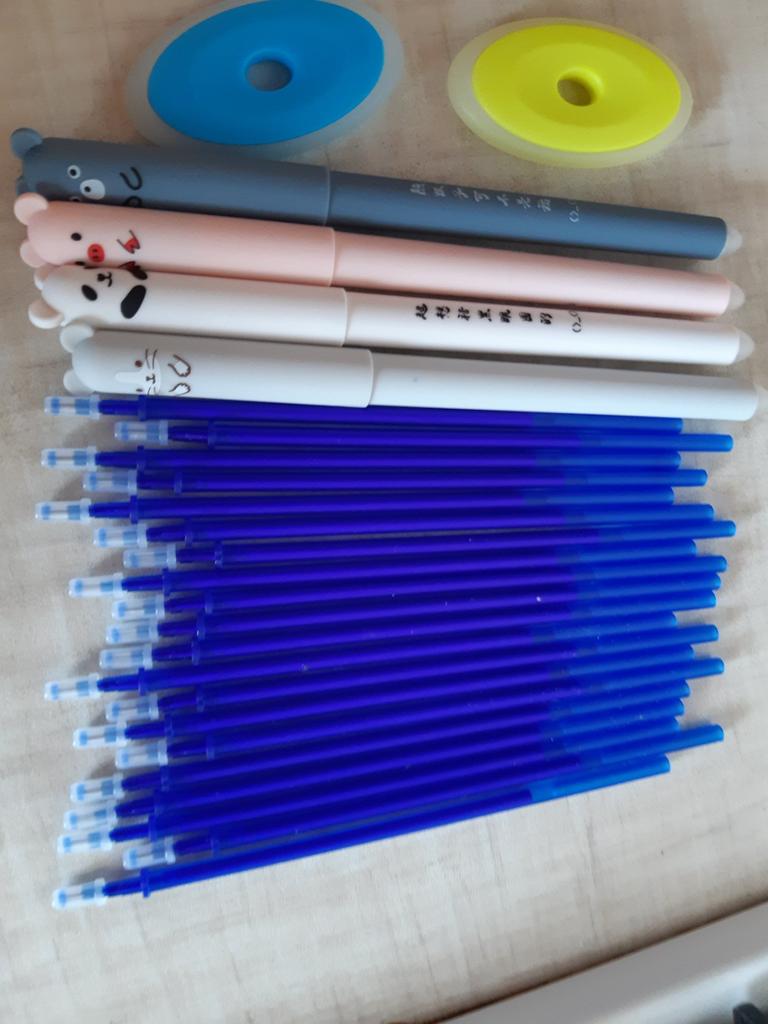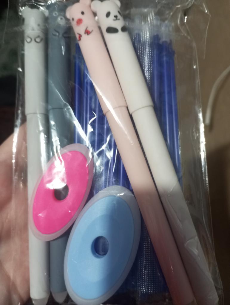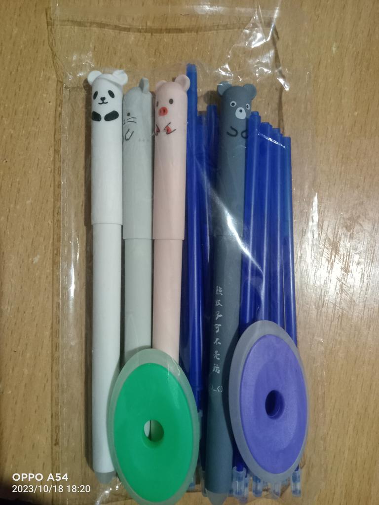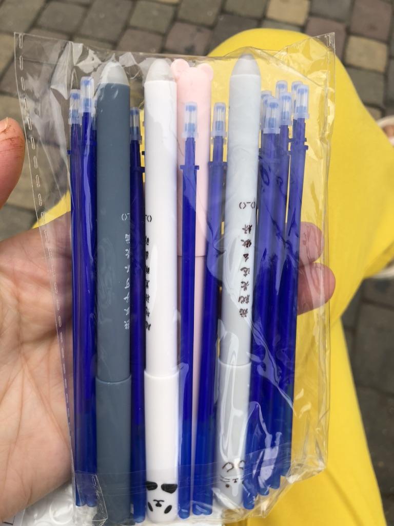 Le penne sono molto belle e scrivono bene, è bello che siano dotate di molte ricariche ed è molto comodo poterle cancellare se commetti un errore.