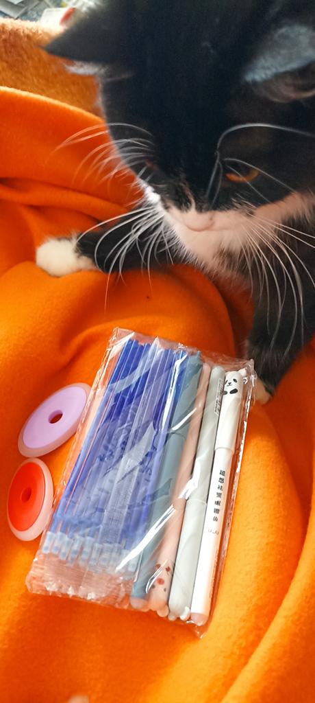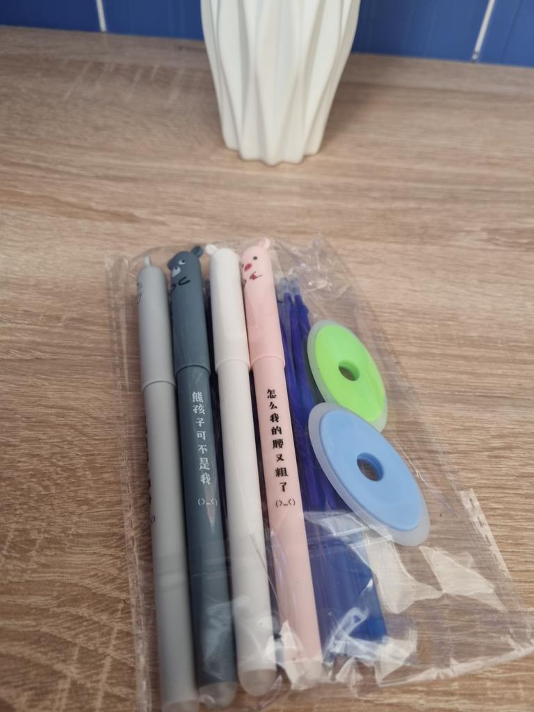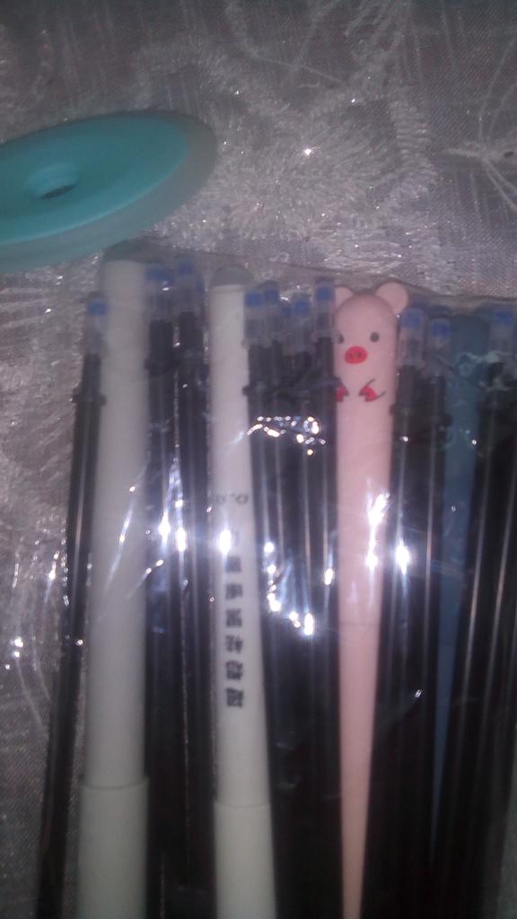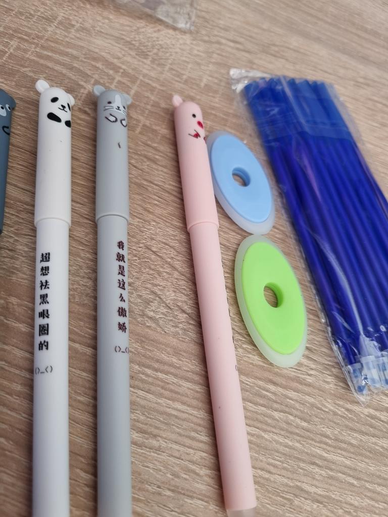 Bellissime penne, con mine abbinate. Almeno questo è quello che sospetto, non l'ho ancora provato. Le penne scrivono abbastanza bene, ma se vuoi scrivere molto velocemente, graffiano un po' e non sono molto spesse sulla carta.