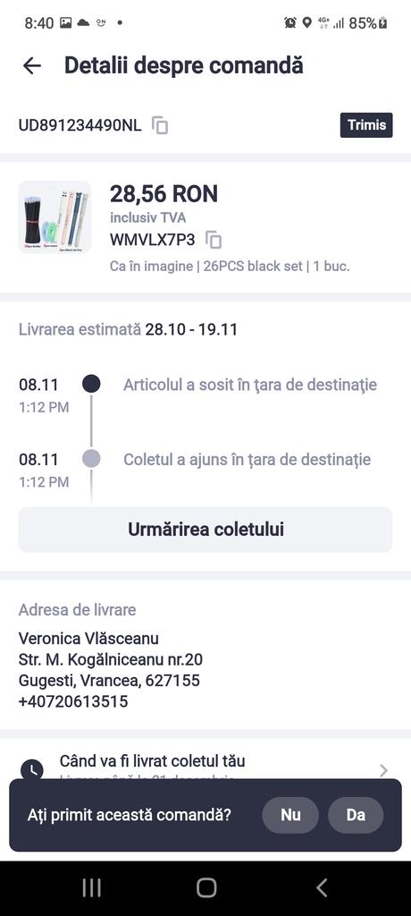 Grazie per l'ordine È arrivato rapidamente in Moldavia...