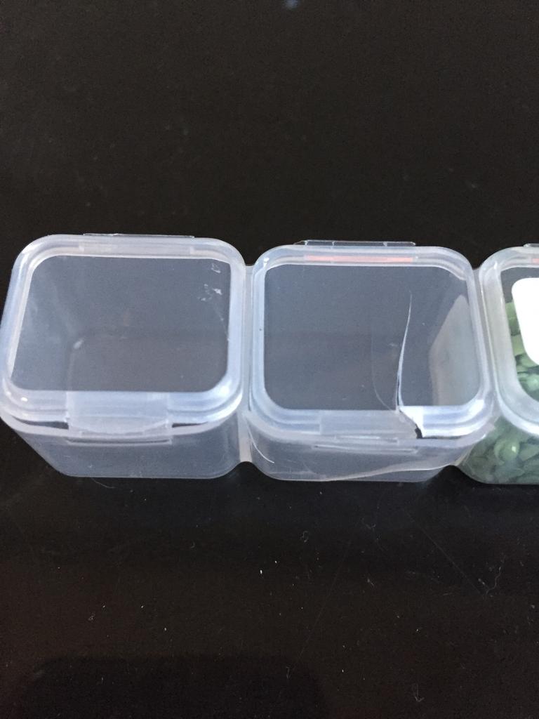 La scatola di immagazzinaggio è danneggiata! Uno scomparto è rotto, un altro non si chiude bene.