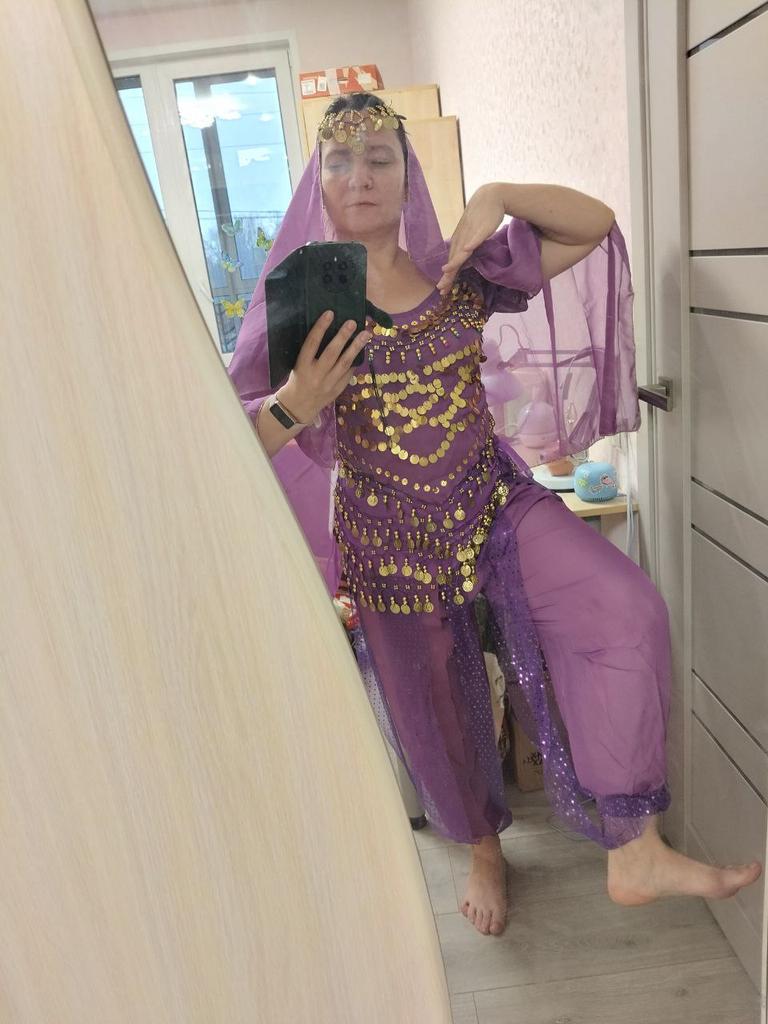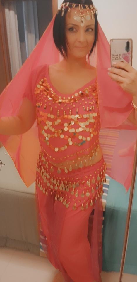 💙 Costume da danzatrice del ventre /// Costume da principessa Yasmin💙* 💥𝗟𝗶𝗲𝗳𝗲𝗿𝘇𝗲𝗶𝘁 29 giorni per la Germania... Purtroppo, secondo il produttore, è stato annunciato prima e non è arrivato in tempo per Carnevale. 😢 💥𝗟𝗶𝗲𝗳𝗲𝗿𝘂𝗺𝗳𝗮𝗻𝗴 La fornitura comprende 1 costume composto da pantaloni + velo + top + cintura di stoffa nel colore corrispondente taglia unica. Il costume è disponibile in 11 colori diversi. Ho ordinato l'abito in taglia unica in blu mare. Indosso la taglia dalla 36 alla 38. Peso 62 kg su 172 cm. Misura coppa 75D. Il costume mi sta bene, ma i pantaloni sono un po' troppo corti per me. 💥𝗤𝘂𝗮𝗹𝗶𝘁ä𝘁 Il costume è opaco nei punti cruciali... penso che sia importante. Non è elastico, ma la parte superiore può essere annodata individualmente. Gli elementi dorati e le perline sono attaccati al tessuto abbastanza saldamente e suonano bene quando vengono spostati. Lo svantaggio, però, è che alcuni elementi glitterati sono caduti subito dopo aver aperto la confezione... Vediamo come si presenta dopo il primo lavaggio? Per la composizione del materiale : Presumo poliestere, ma non sono riuscito a trovare un'etichetta. 💥𝗙𝗮𝘇𝗶𝘁 Bellissimo costume da principessa Yasmin, perfetto per carnevale o travestimenti. Ben fatto. Visivamente sembra di qualità superiore a quanto previsto per il prezzo... Direi che è adatto ad adulti dalla taglia 34 fino ad un massimo della 40.