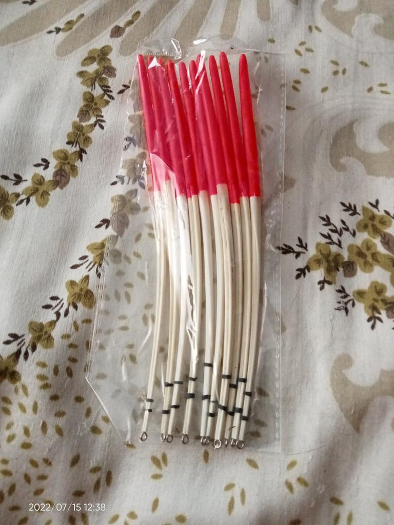 In termini di quantità e qualità, corrisponde pienamente. I galleggianti sono dotati di anelli di gomma per il fissaggio alla lenza e all'estremità è presente un anello di metallo. Raccomando.