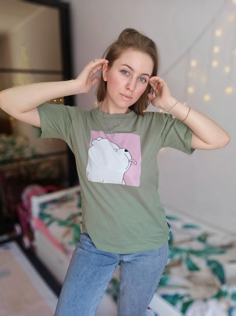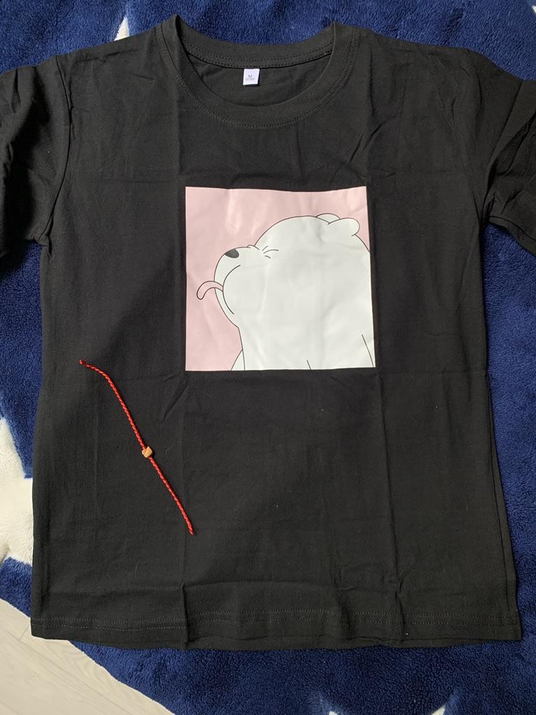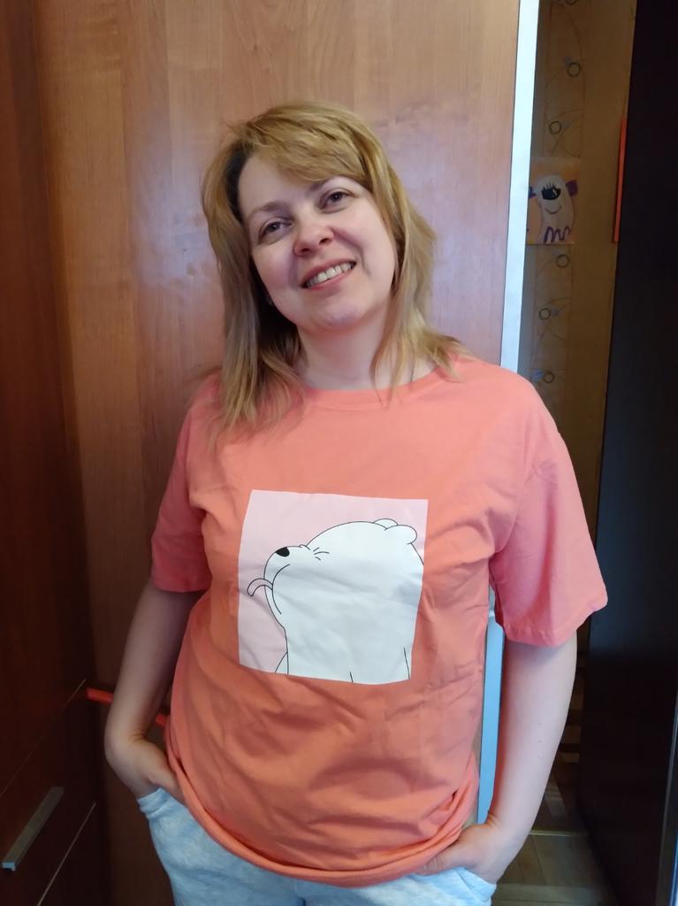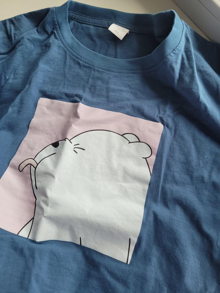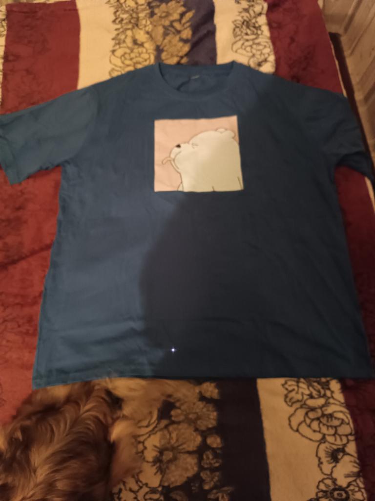 Fantastica t-shirt con una divertente etichetta termoadesiva. La t-shirt è realizzata in puro cotone e l'etichetta è gommata. È un orsacchiotto che mostra una lingua. Un modello tra cui scegliere, ma tanti colori e taglie di t-shirt. La maglietta veste bene. L'orsacchiotto fa ridere tutti e attira l'attenzione. In una maglietta del genere è difficile infilarsi senza farsi notare. Lo consiglio perché ne vale la pena. Mi chiedo se dovrei comprarne un altro. PS. L'ultima foto è una schermata della traduzione del tag.