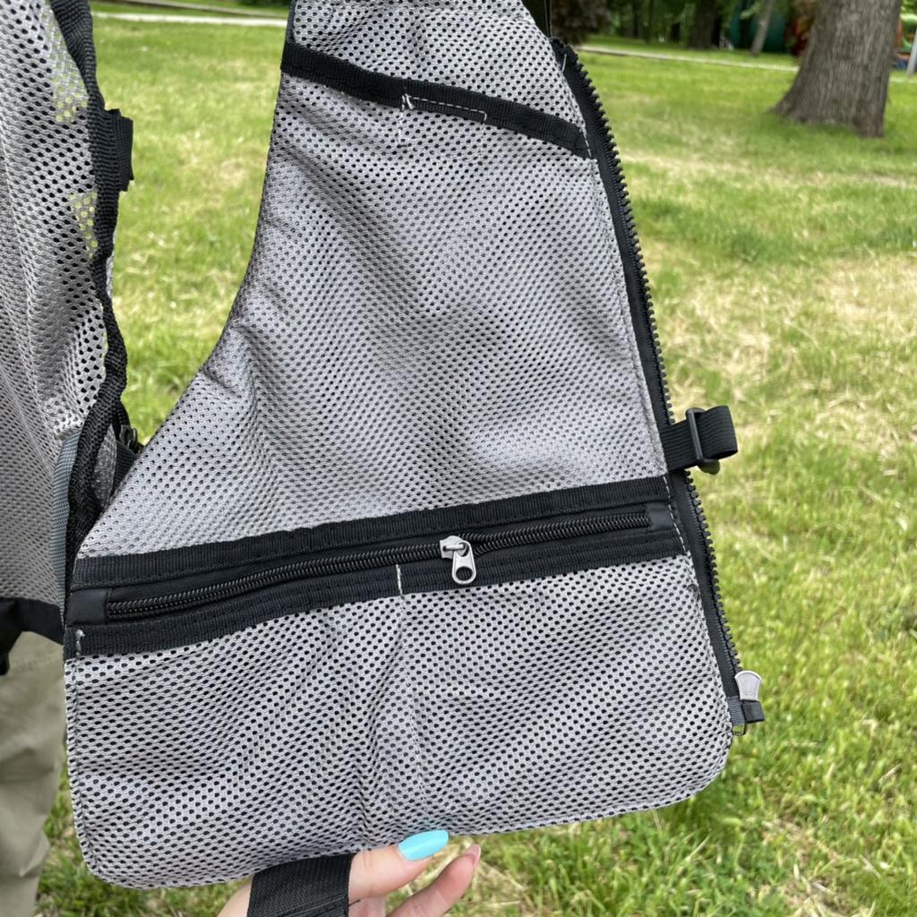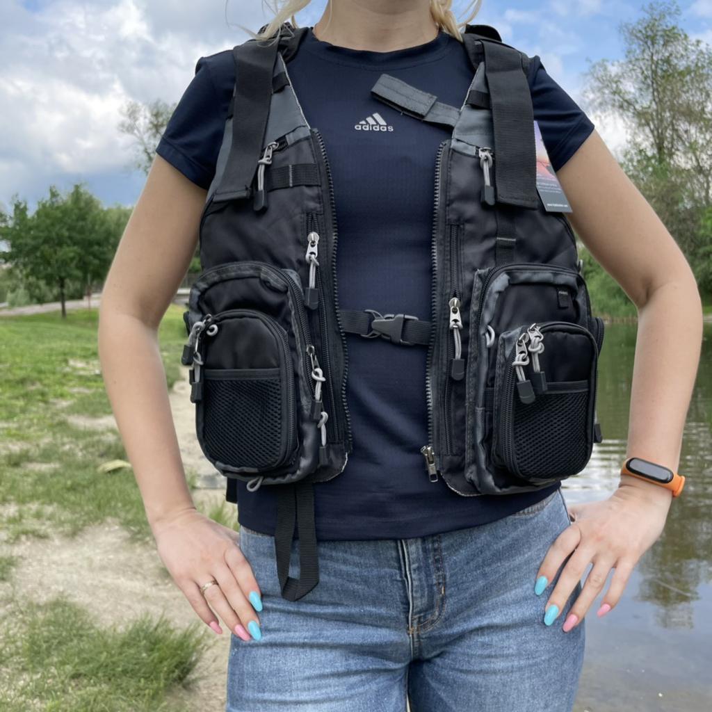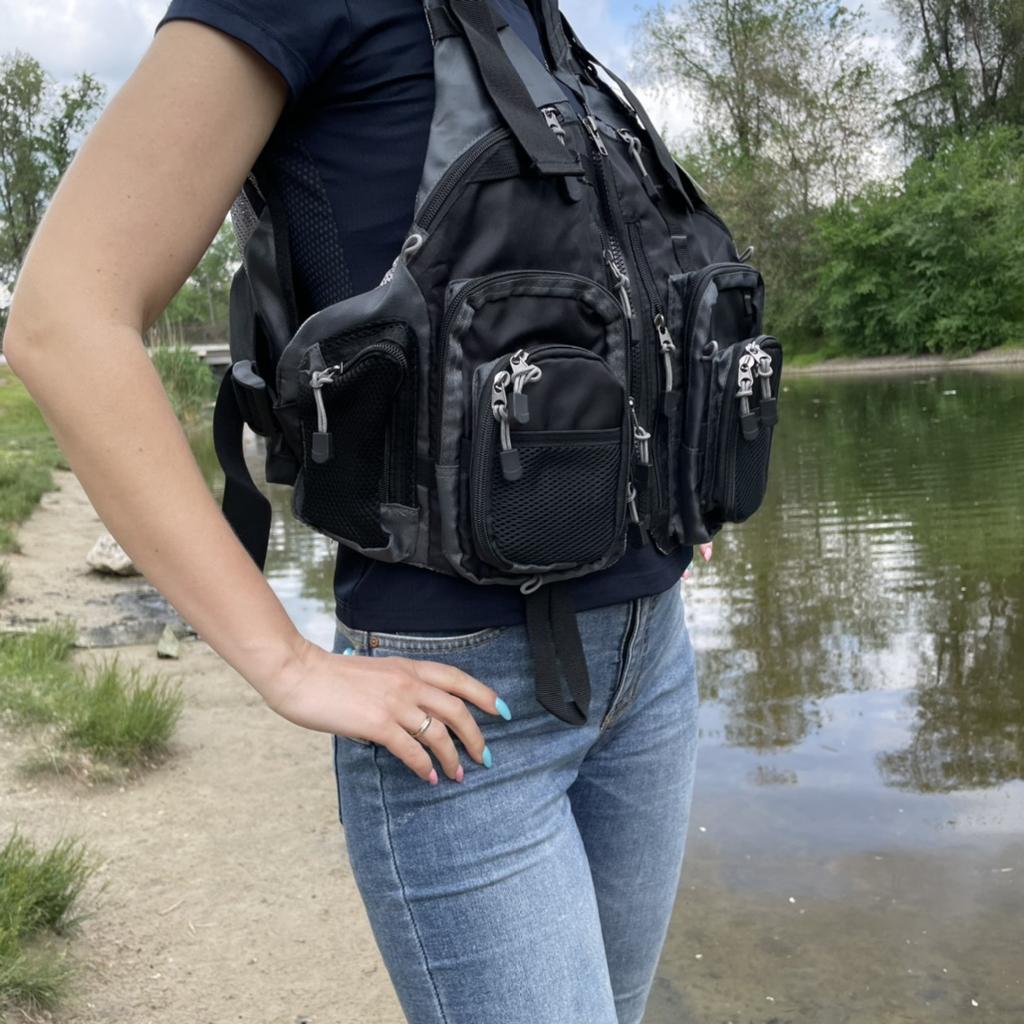 Comodo accessorio per la pesca in acqua. Ha molte tasche in cui puoi mettere tutte le cose di cui hai bisogno in acqua...