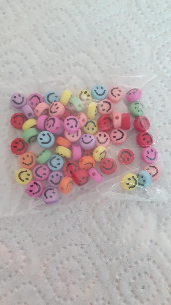 100 pezzi di perline rotonde acriliche fai da te color caramello, perline con viso sorridente carino con risultati di fori per la creazione di gioielli