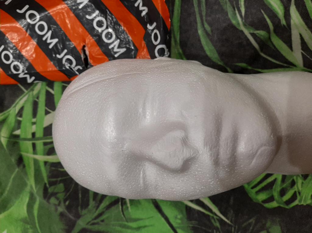La testa di polistirolo è arrivata totalmente schiacciata e non può essere utilizzata, pessimo imballaggio