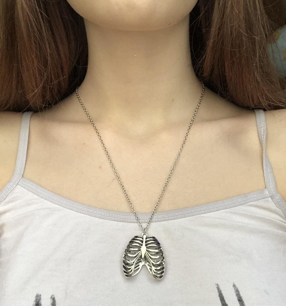 Moda Gotica Vinage Gabbia Toracica Collana Anatomico Scheletro Cuore Goth Punk Unico Retro Collana con ciondolo Gioielli per Uomo/Donna