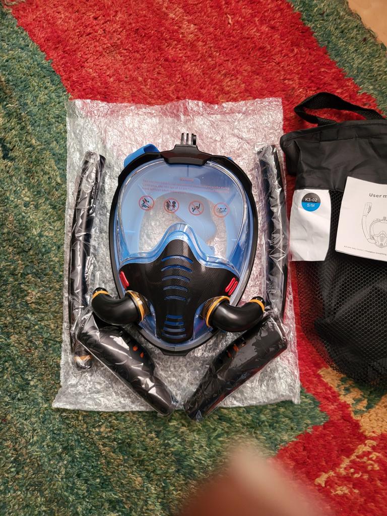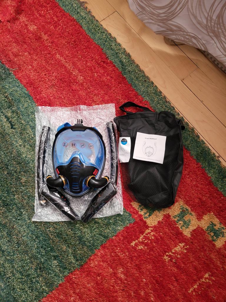 Consegnato imballato, intero. Non è difficile da raccogliere. La taglia è adatta (solo 2 opzioni, gli uomini probabilmente solo L / XL si adatteranno). Due tubi: sarà più facile respirare. Rispetto al sistema classico. Inoltre, non irrito le gengive, che il tubo standard non dovrebbe strofinare, quindi c'è un supporto sotto GoPro). Ma ci sono ancora domande: come immergersi a una profondità superiore a 4 m, non soffiarsi il naso, non versare spesso in profondità, non sudare? Finora, penso che per un lungo viaggio tranquillo, come la barriera corallina in Egitto, soprattutto per i principianti che non si immergono in profondità, è un bene, due tubi e sono più lunghi, non come la versione con il tubo centrale, che non mi è piaciuto.). Ma tutto si saprà dopo il TEST. Poi aggiungo.
