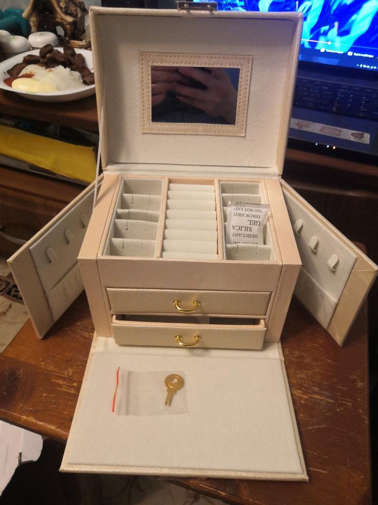 Organizzatore gioielli davvero molto bello e utile. È elegante con una cura dei dettagli davvero fantastica, le sezioni dei vari gioielli sono comode e sono riuscita a far entrare tutte le mie cose. All’interno troverete anche una chiave, per tenere al sicuro i vostri gioielli.
