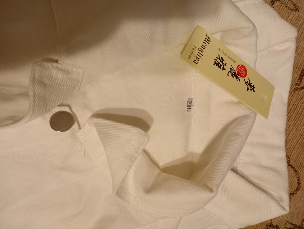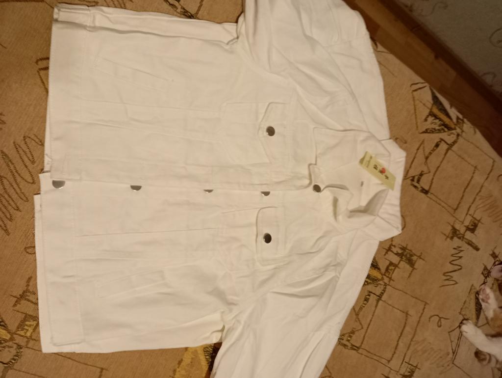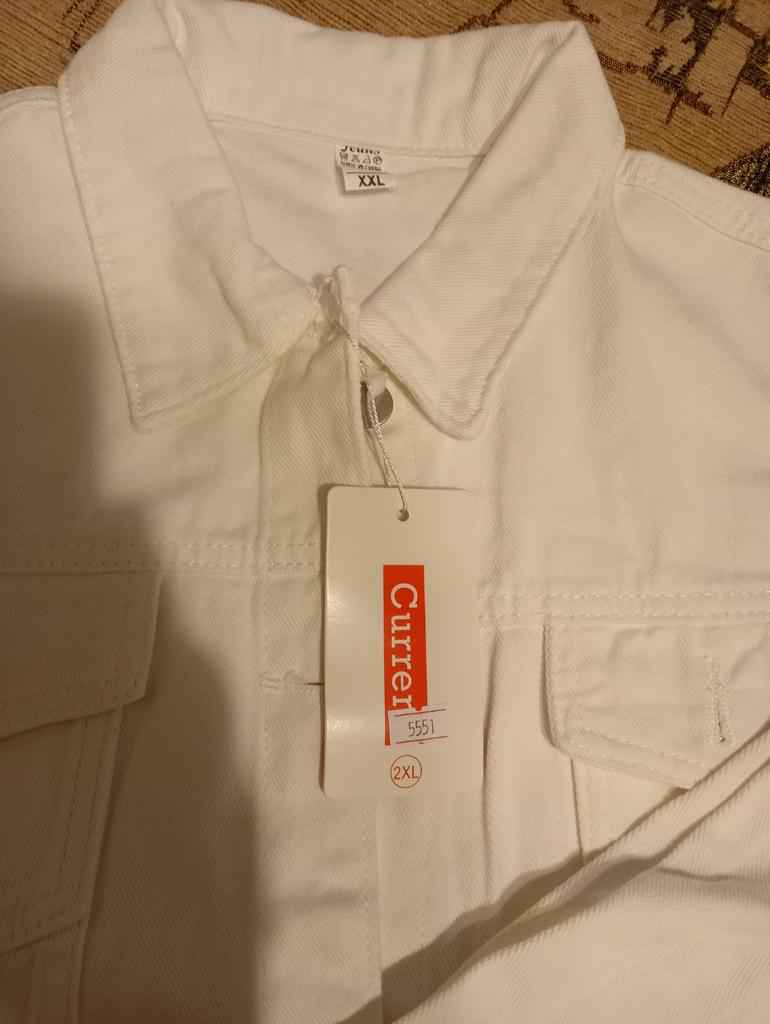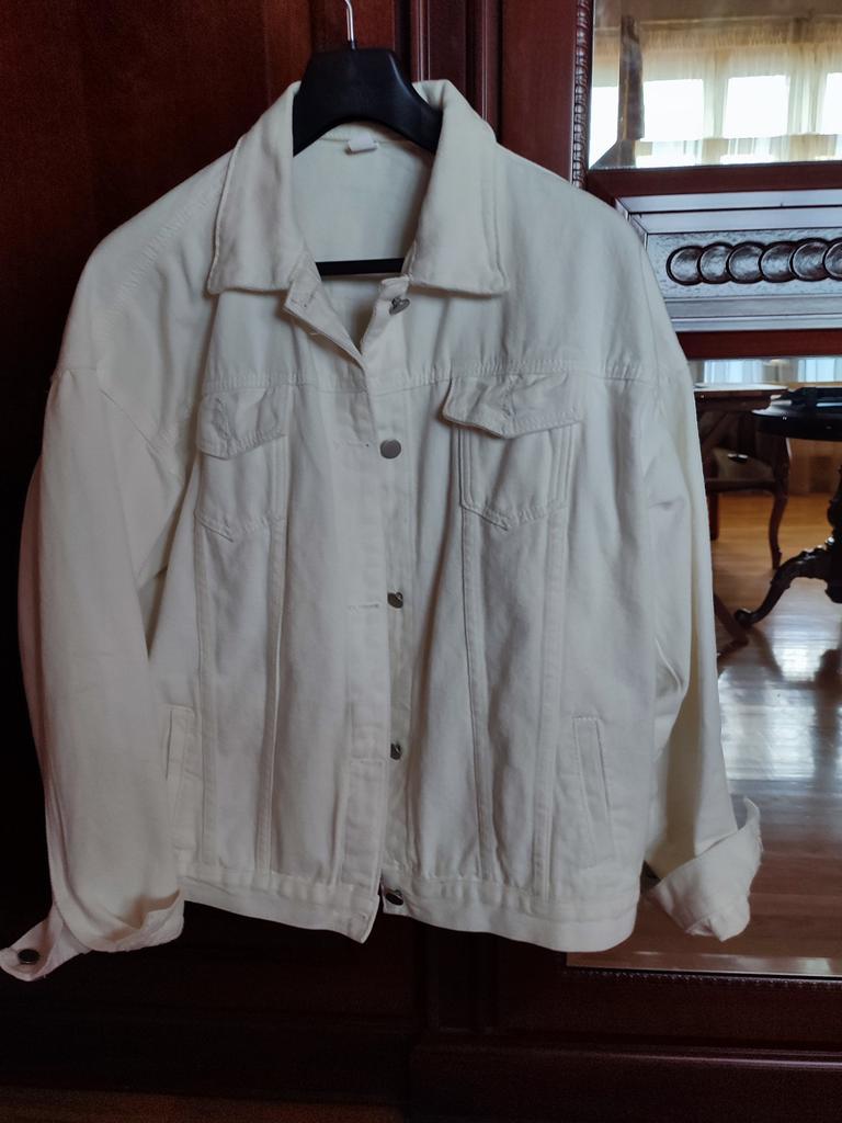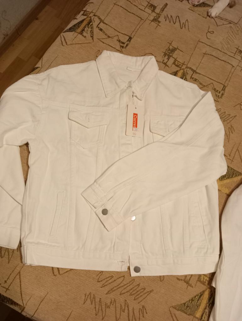 Ottima giacca di jeans bianca. La fotocamera non trasmette il colore come dovrebbe. In realtà una giacca bianca. La griglia dimensionale corrisponde.