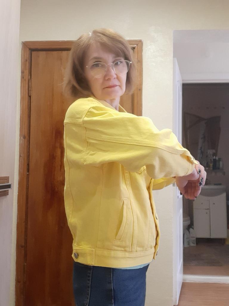Giacca di qualità. Il tessuto è morbido, piacevole al tatto. Naturale. Le maniche sono un po' lunghe per la mia altezza di 1,67. Il colore è più chiaro che in foto. Più limone. Nel complesso soddisfatto.