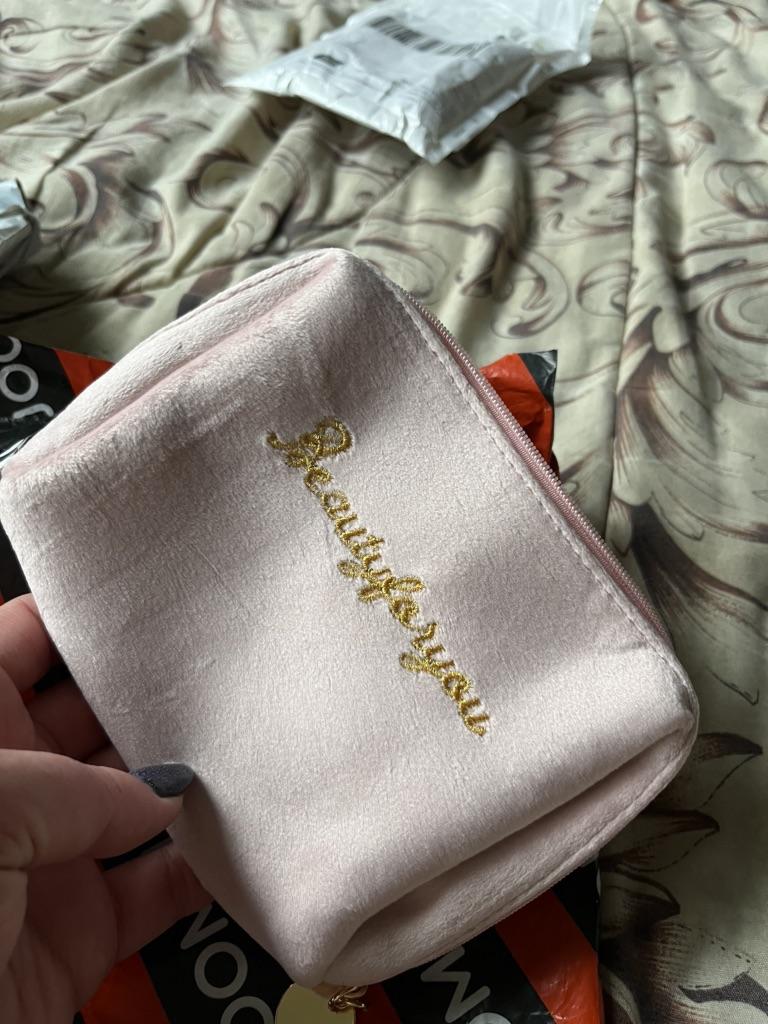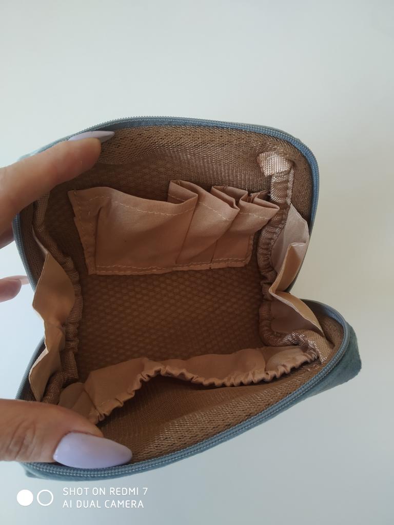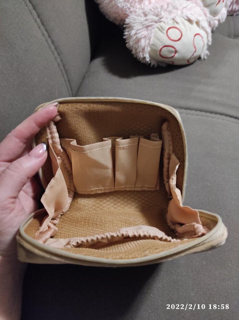 Buon astuccio cosmetico, piccolo. Opzione a piedi. Puoi mettere l'essenziale e portarlo con te nella borsa. Non c'è odore estraneo, cuciture lisce e pulite. raccomando