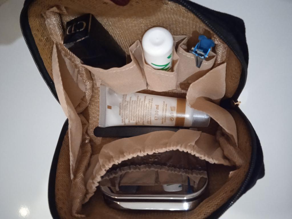 La trousse è buona, piacevole al tatto. Abbastanza spazio all'interno della trousse. Sono contento di questo ordine.