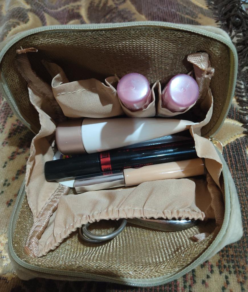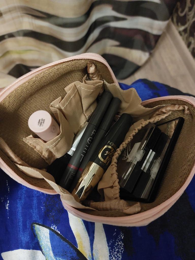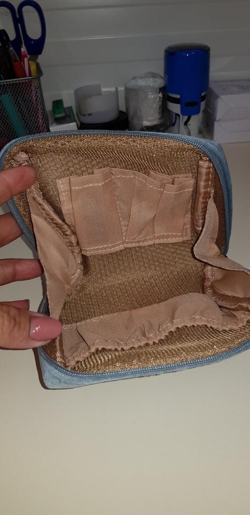 la custodia cosmetica è molto piccola. Non mi aspettavo nemmeno che lo fosse. Ma voglio dire che è carino. All'interno ci sono varie tasche per vari cosmetici.