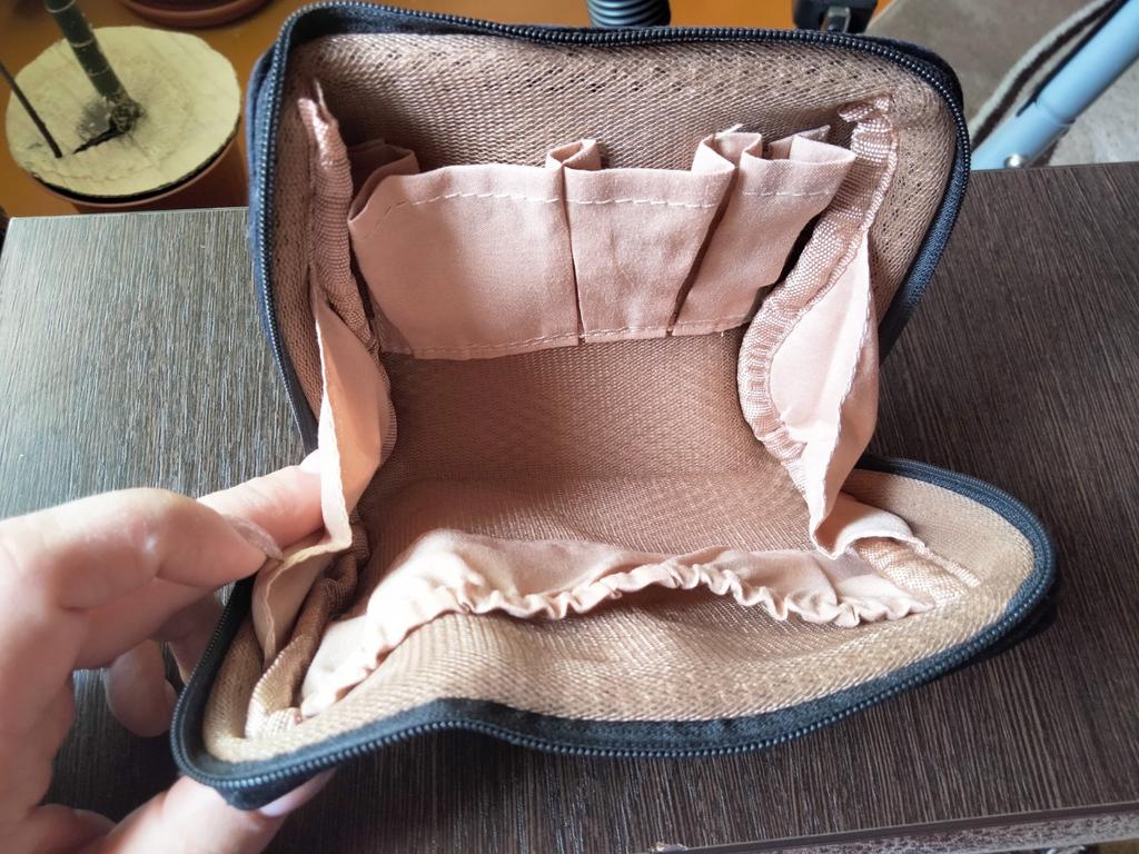 La trousse corrisponde alla descrizione, ma non mi piace il materiale superiore. Il materiale è simile al velluto. L'ho visto quando ho scelto. Non sono riuscito a trovare nient'altro di simile, quindi l'ho ordinato.