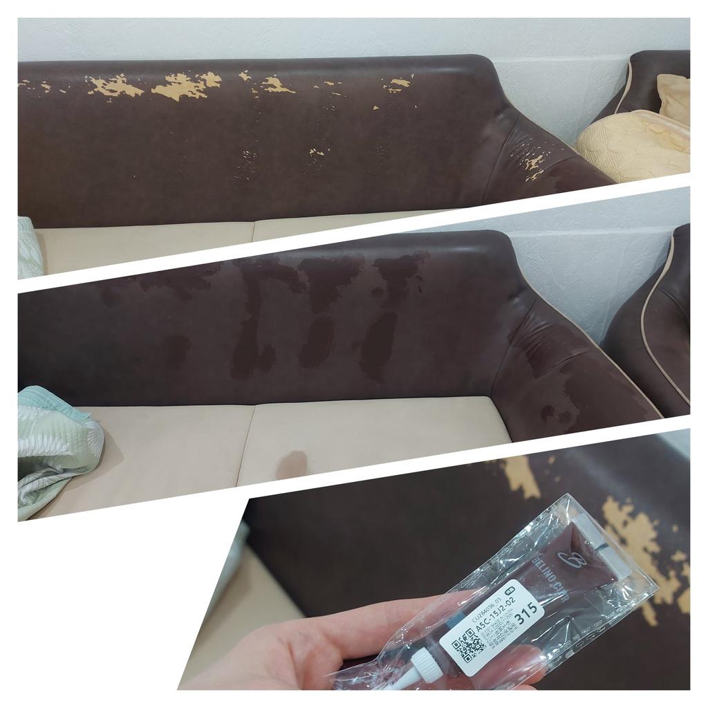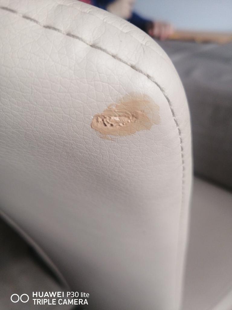 Applicato è inizialmente brillante, dopo l'asciugatura diventa marrone scuro, applicato su un divano in ecopelle finché dura