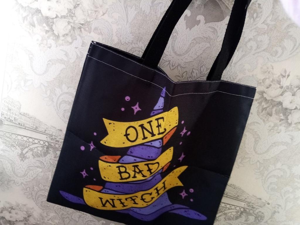 Borsa a mano da donna con stampa a lettere della serie Halloween, grande capacità, eco-riutilizzabile, a tracolla