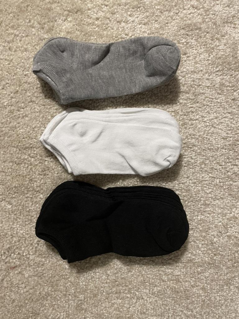 Calzini perfetti per l'estate, leggeri, elastici e perfetti per la taglia 40.5, misura del piede 25.5 cm. Nel set da 10 calzini, ne ho ordinati di misti, quindi è nero, bianco e grigio ma puoi scegliere anche solo 1 colore. Spedizione 2.5 settimane.Buon acquisto!