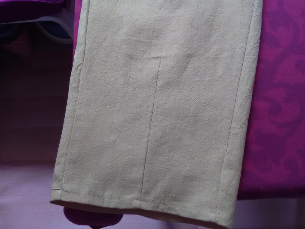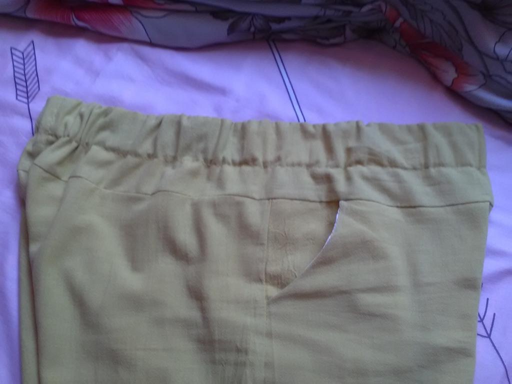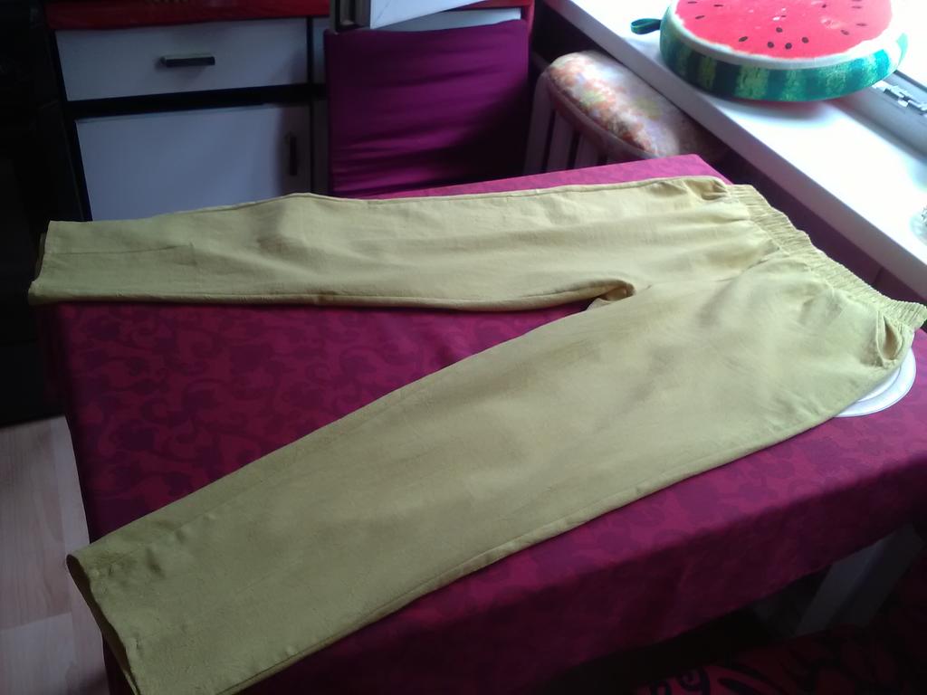 Mi piacciono molto. Un bel colore, un giallo pacato. Materiale molto buono. Non è sottile, sembra lino, non fa sudare la pelle sul calore e non è caldo in loro.