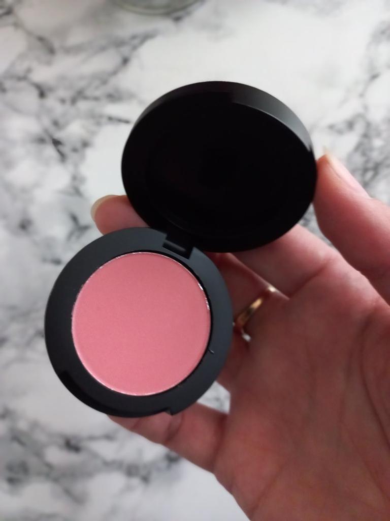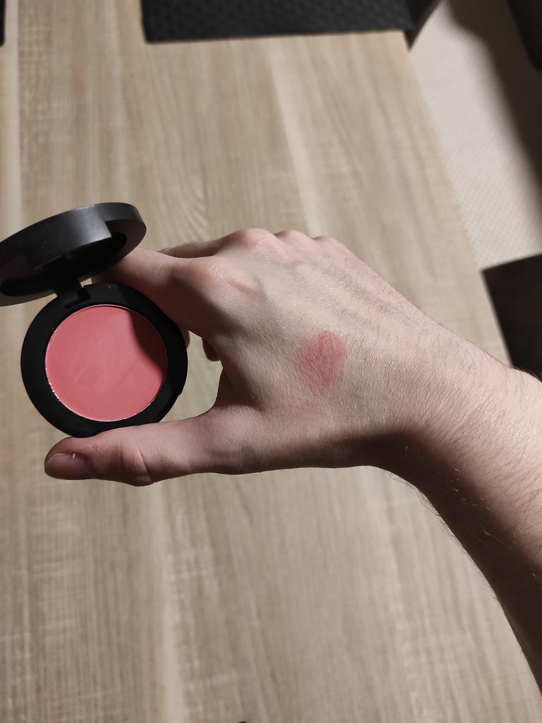 Blush molto carino, come in foto, il colore rosa è forte ma non troppo scuro.