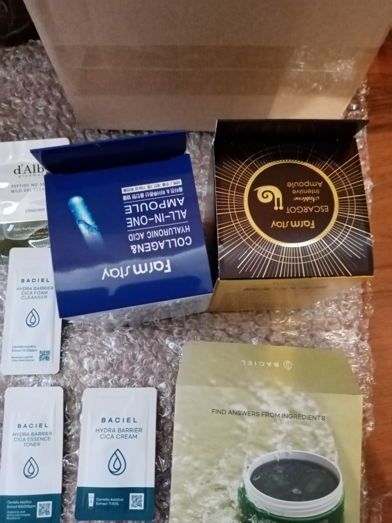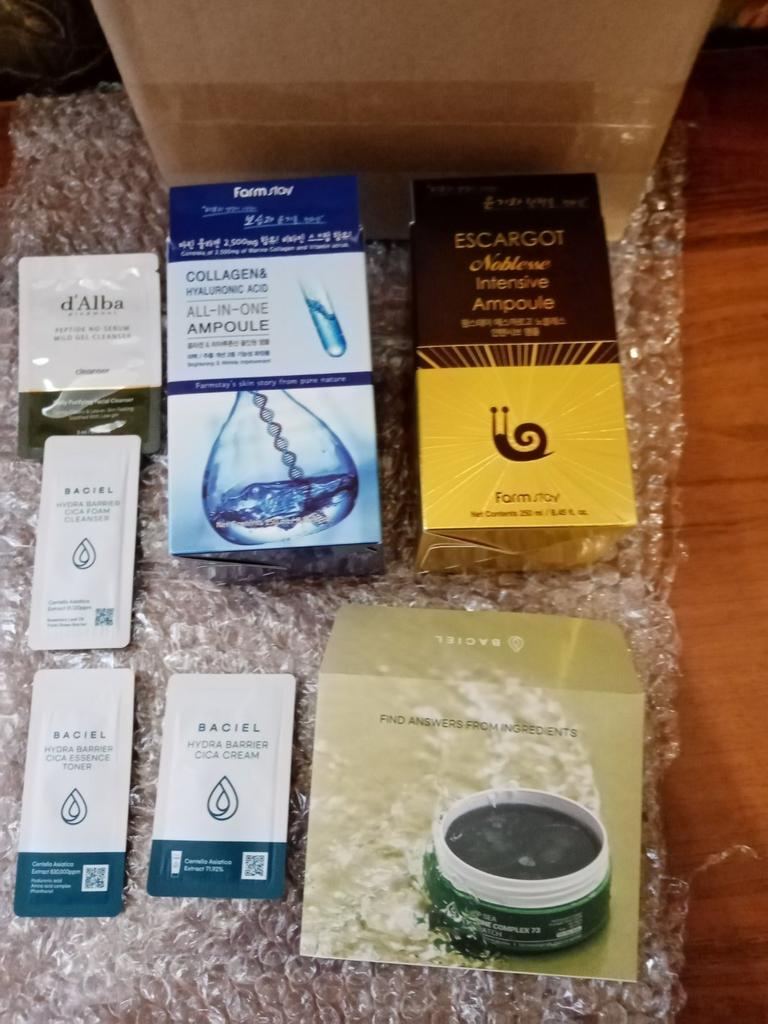 La confezione è eccellente Grazie per i campioni. Voglio dire che queste non sono fiale, ma un gel denso. Si assorbe abbastanza velocemente e non lascia fastidi. Non provoca allergie. È troppo presto per parlare dei risultati, perché lo uso solo da 3 giorni.