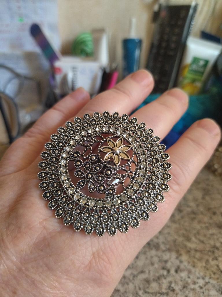 Grazie mille. L'anello è adorabile. Sembra impressionante. Ma tieni presente che è molto grande (il diametro del cerchio è 6 cm)