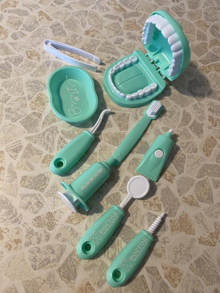 Il pacco è stato consegnato per più di 2 mesi. Ottimo set in plastica. Per giocare al dentista, un set completo di strumenti. Grazie per aver progettato e realizzato questo prodotto. I nipoti saranno felici.