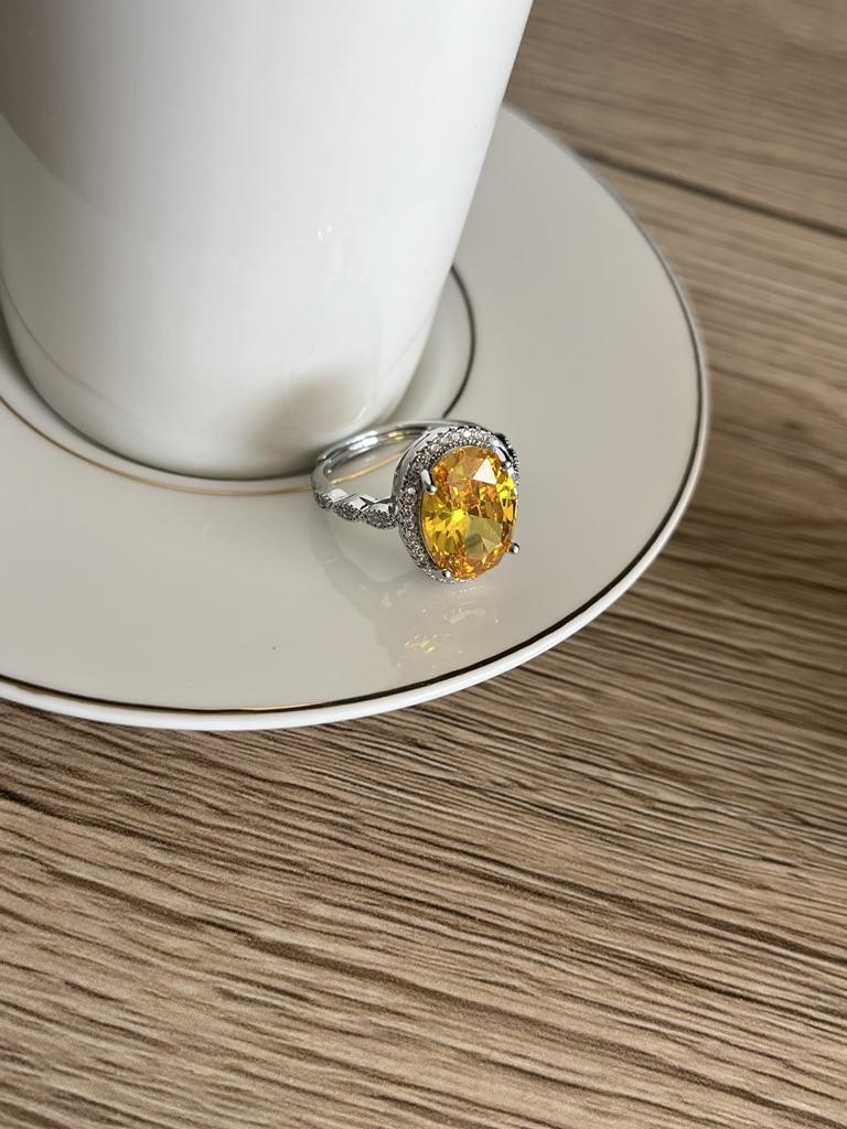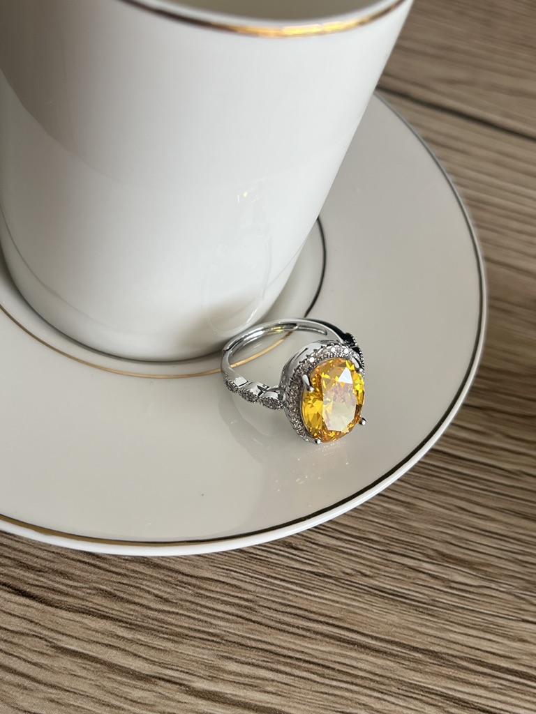 BELLA BOX Anello da donna di lusso con zircone ovale di colore giallo, regalo di fidanzamento per feste di fine gioielleria femminile