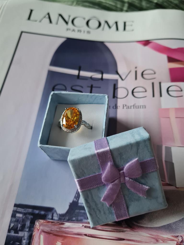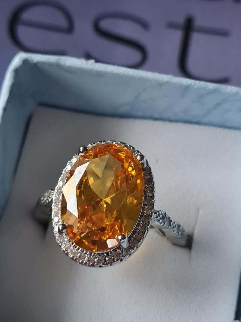 Anello assolutamente sbalorditivo di Bella Box. È arrivato in scatola di presentazione e borsa con zip in 3 settimane in Irlanda. Il colore della pietra è giallo intenso, circondato da minuscoli cristalli trasparenti, realizzati in lega. L'anello si adatta a chiunque in quanto è ridimensionabile.Haopy Shopping!