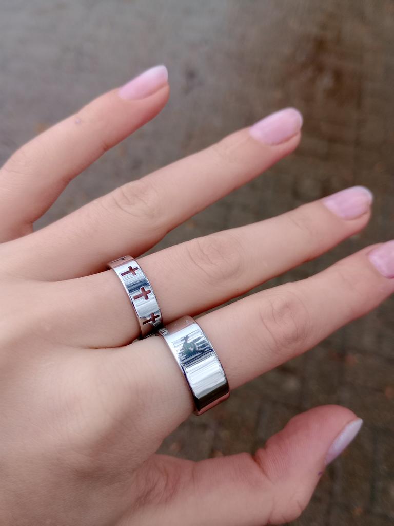 Rinhoo Coppia di Anelli in Acciaio Inossidabile Donna Uomo Hollow Croce Personalità Punk Anello di Barretta Fidanzamento Regalo di Gioielli per Feste di Nozze