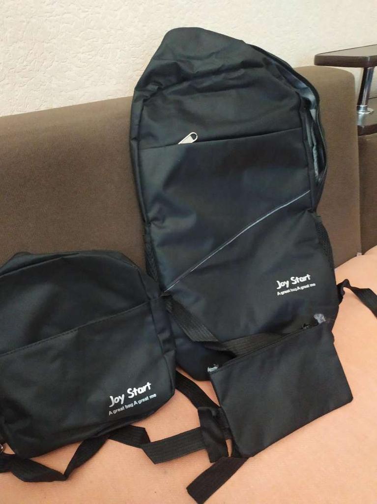 Un buon set, lo zaino è spazioso, la borsa è comoda.