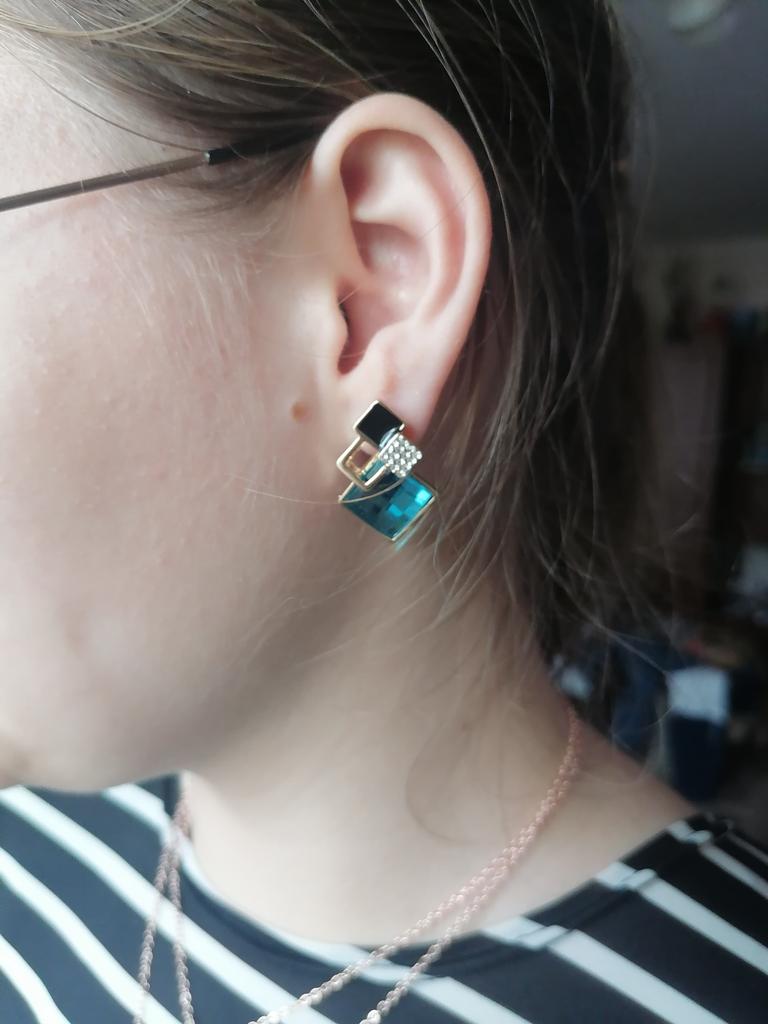 Come nella foto. Orecchini carini, non molto pesanti per le orecchie. Li indosso con piacere.